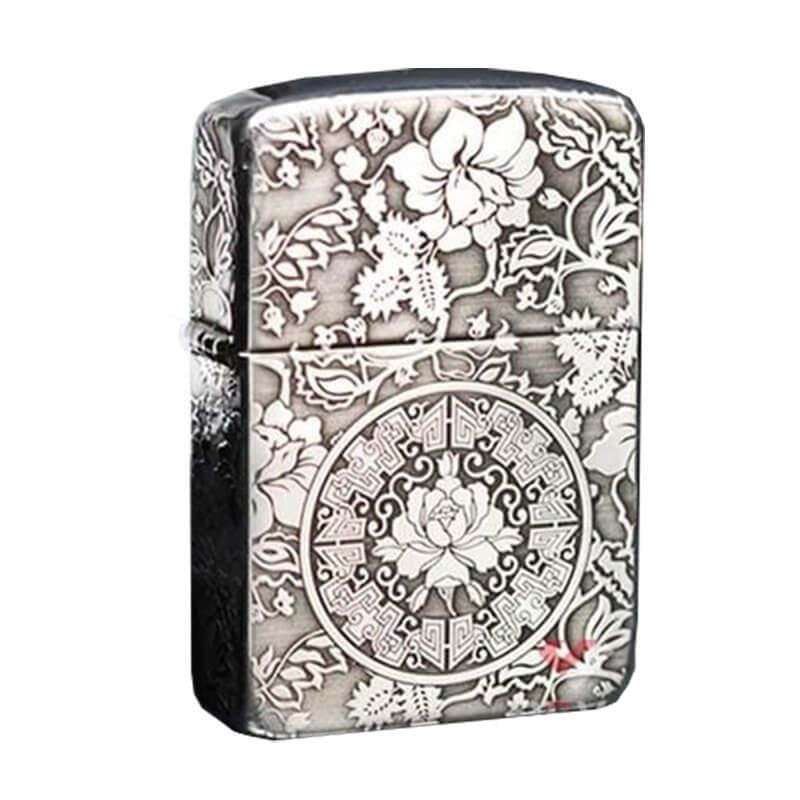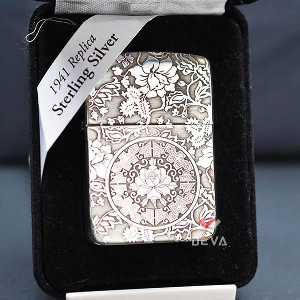 Bật Lửa Mỹ Chính Hãng Zippo Bạc Khối Tái Bản 1941 Khắc Hoa Mẫu Đơn Các Mặt BK53