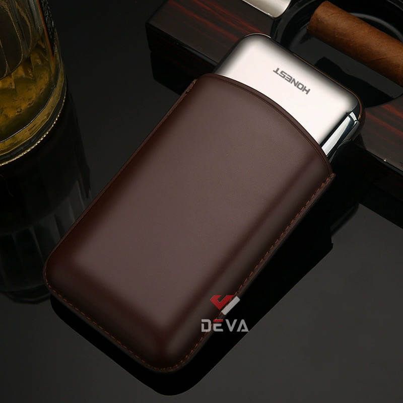 Bao da đựng Cigar Honest loại 3 điếu kèm khăn chuyên dụng BCD091
