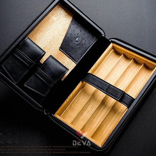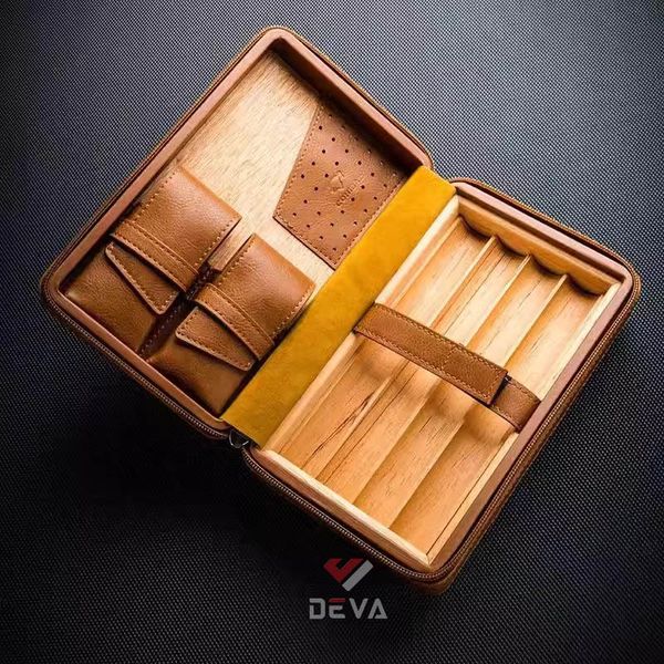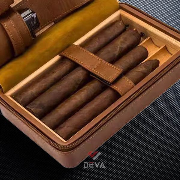 Mẫu bao da T116 của Deva Shop chuyên dùng để mang theo Cigar với đầy đủ dụng cụ kèm theo. Bên trong có 1 túi đựng bật lửa và 1 túi đựng dao cắt có sẵn, kết hợp thêm ngăn đựng túi giữ ẩm tiện dụng. Nhỏ gọn và dễ mang theo chính là đặc điểm nổi bật của mẫu bao da T116.