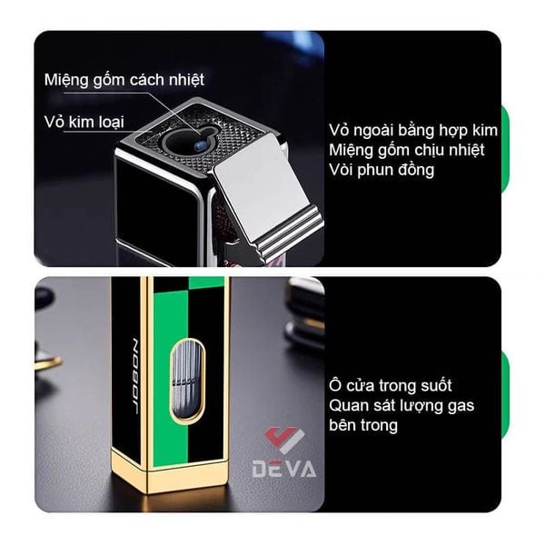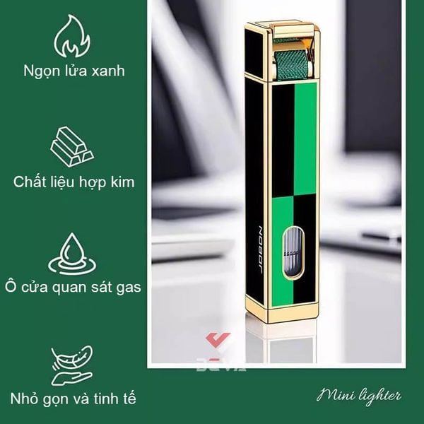 Khám phá sự kết hợp hoàn hảo giữa thẩm mỹ và công nghệ với bật lửa gas Jobon ZB-335 chính hãng. Với thiết kế dạng thanh thanh mảnh, sang trọng và hiện đại, đây không chỉ là một chiếc bật lửa mà còn là món phụ kiện khẳng định phong cách riêng của quý ông. Công nghệ "Straight blue flame" cho ngọn lửa khò màu xanh cực mạnh, tập trung và chống gió tuyệt đối, giúp bạn dễ dàng sử dụng trong mọi điều kiện thời tiết. Điểm nhấn đột phá với thiết kế ô cửa kính trong suốt giúp bạn dễ dàng theo dõi lượng gas còn lại, chủ động trong việc nạp thêm nhiên liệu. Sản phẩm được hoàn thiện từ hợp kim kẽm bền bỉ với trọng lượng đầm tay và kích thước gọn gàng. Đa dạng phiên bản từ hoa văn Chữ Vạn (Sayagata) may mắn, Hồi văn (Greek Key) tinh tế đến kẻ Caro xanh đen cá tính. Cơ chế đánh lửa hiện đại, dễ dàng điều chỉnh độ cao ngọn lửa và bơm gas tái sử dụng nhiều lần. Sở hữu ngay Jobon ZB-335 tại Deva Shop. Sự lựa chọn tinh tế cho chính bạn hoặc làm quà tặng cao cấp cho đối tác và người thân!