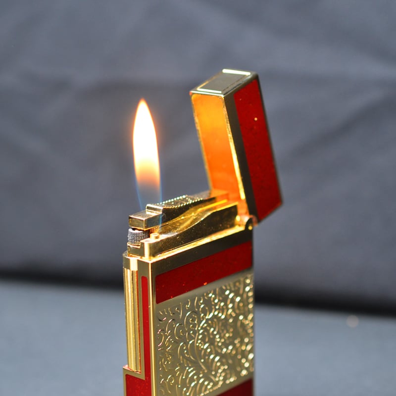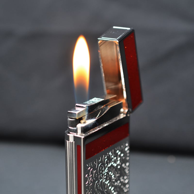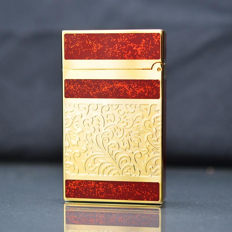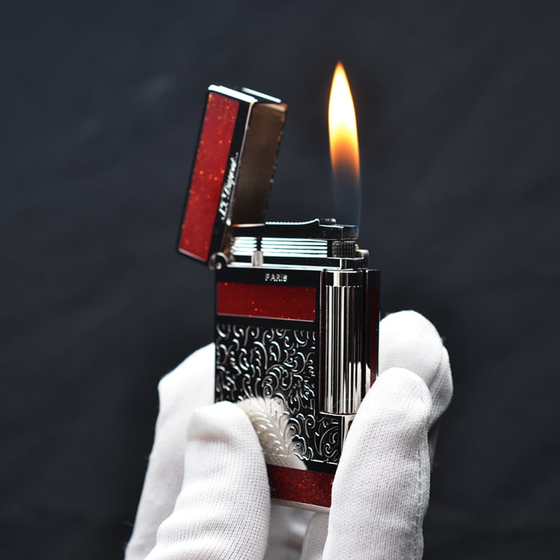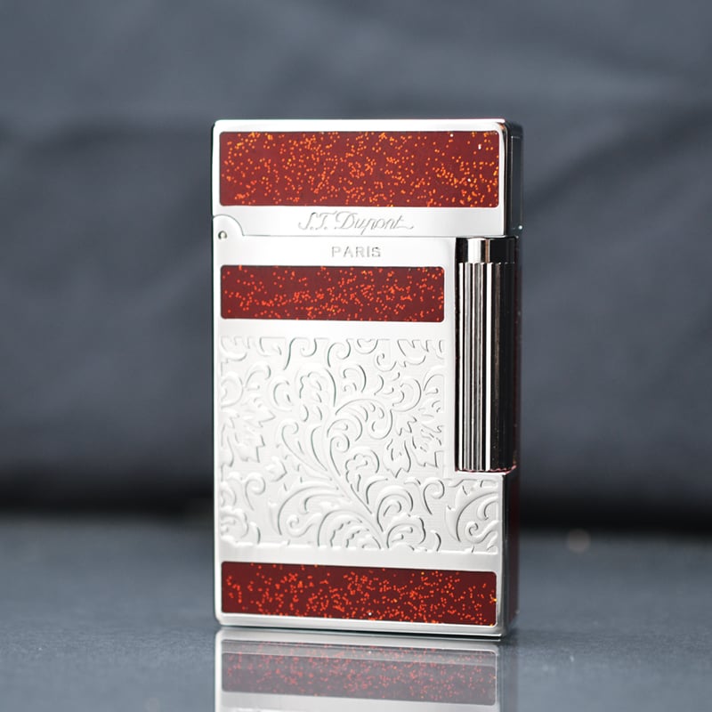 Bật lửa Dupont sơn mài phù hợp với những anh thích sự giản dị nhưng không kém phần sang trọng quý phái những dòng dupont sơn mài tuy tiếng không được hay bằng hợp thép nguyên khối nhưng bù lại chiếc bật lửa lại có vẻ ngoài vô cùng đẹp và bắt mắt. Những mảng sơn mài màu đỏ mận kèm kim tuyến được điểm xuyết trên chiếc bật lửa Dupont D46 này. Bên cạnh đó alf hoa văn cổ điển khắc nổi bật vô cùng tinh xảo.