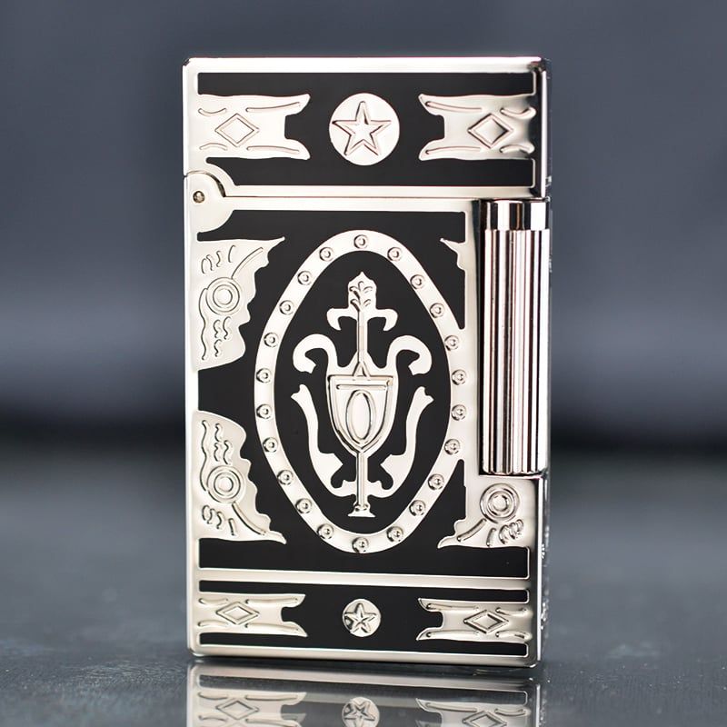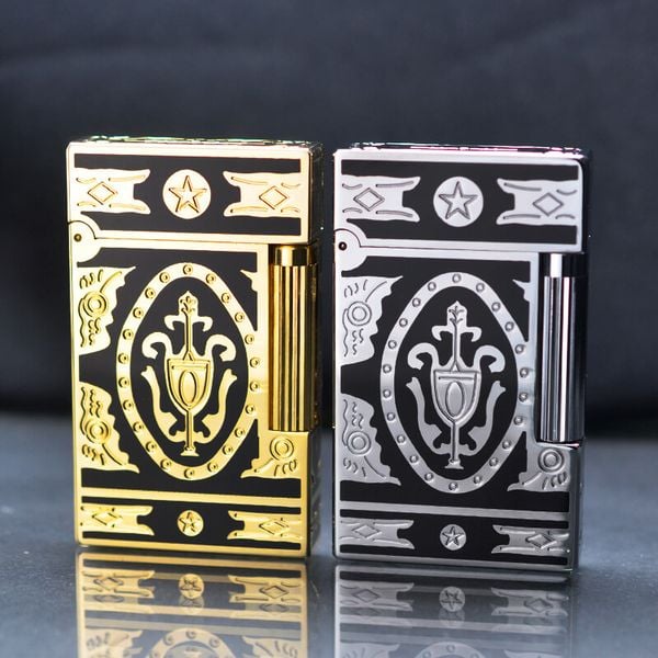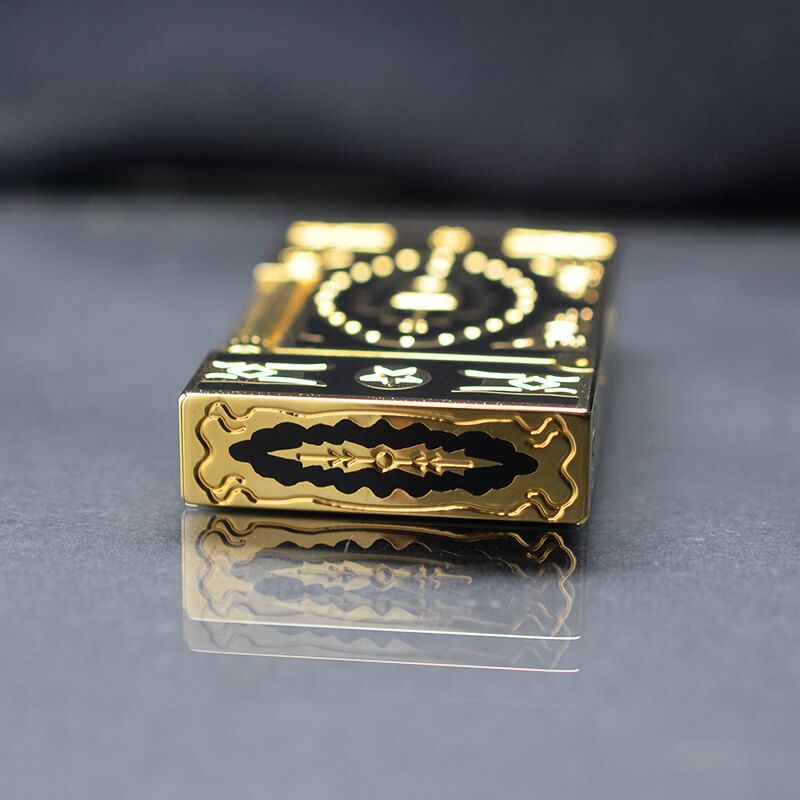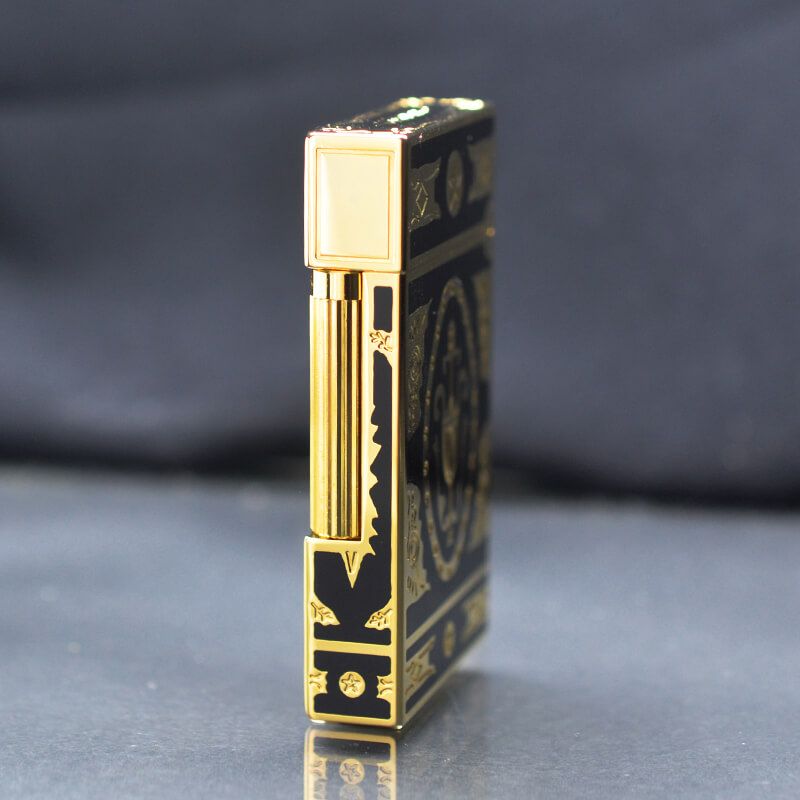 Chiếc Dupont D08 của Deva Shop được thiết kế với lớp sơn mài đen kết hợp cùng những hoa văn snag trọng mang phong cách hoàng gia cổ điển. Các chi tiết hoa văn được mà vàng hoặc mạ bạc càng làm tôn vinh nét quý phái của chiếc bật lửa D08. Đây thực sự là mốn quà tuyệt vời dành cho các quý ông đam mê bật lửa!