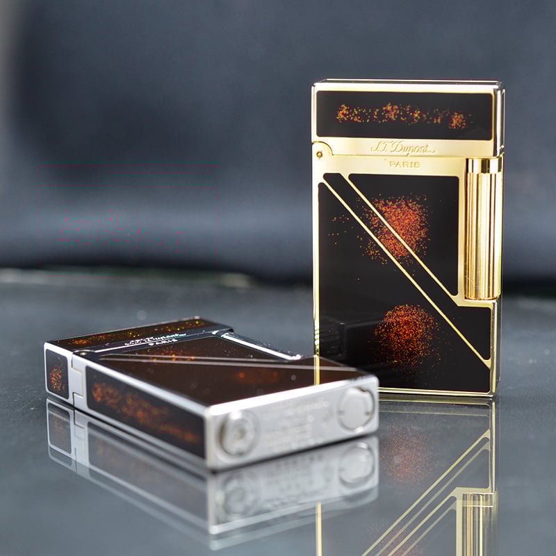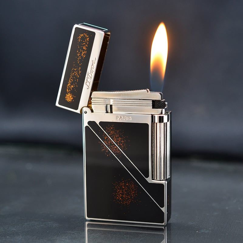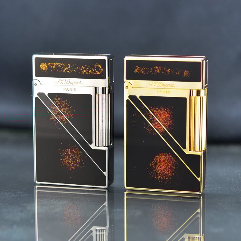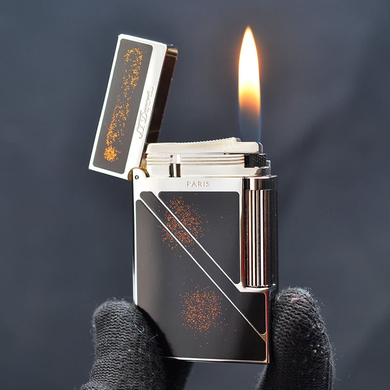 - Bật lửa S.T.Dupont sơn mài đen viền vàng hoặc viền bạc tinh tế và sang trọng