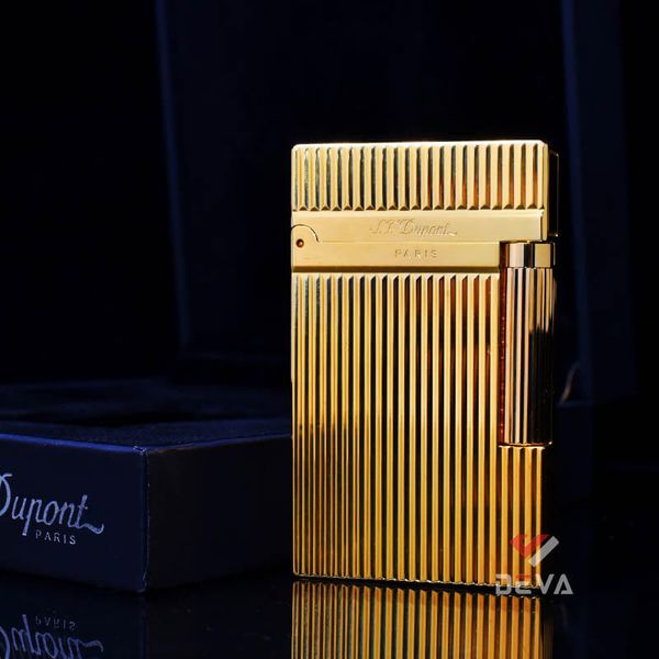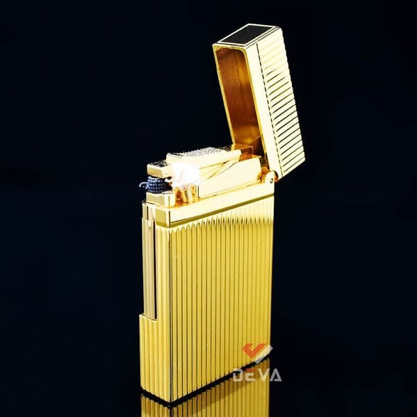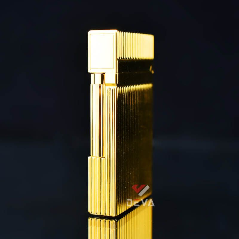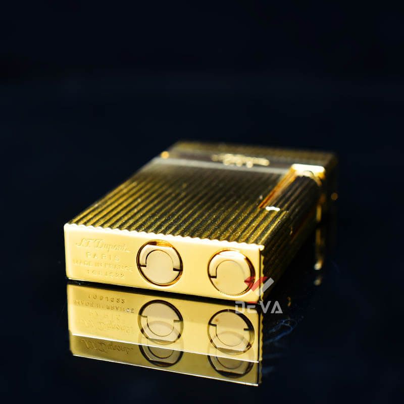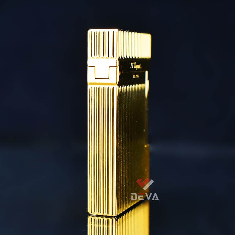 Bật Lửa ST Dupont Hồng Kông Xăng Đá Kẻ Dọc Vân Sóng Nổi DX06V Vàng: