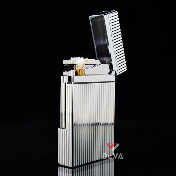 Bật Lửa ST Dupont Hồng Kông Xăng Đá Kẻ Dọc Vân Sóng Nổi DX06T Trắng:
