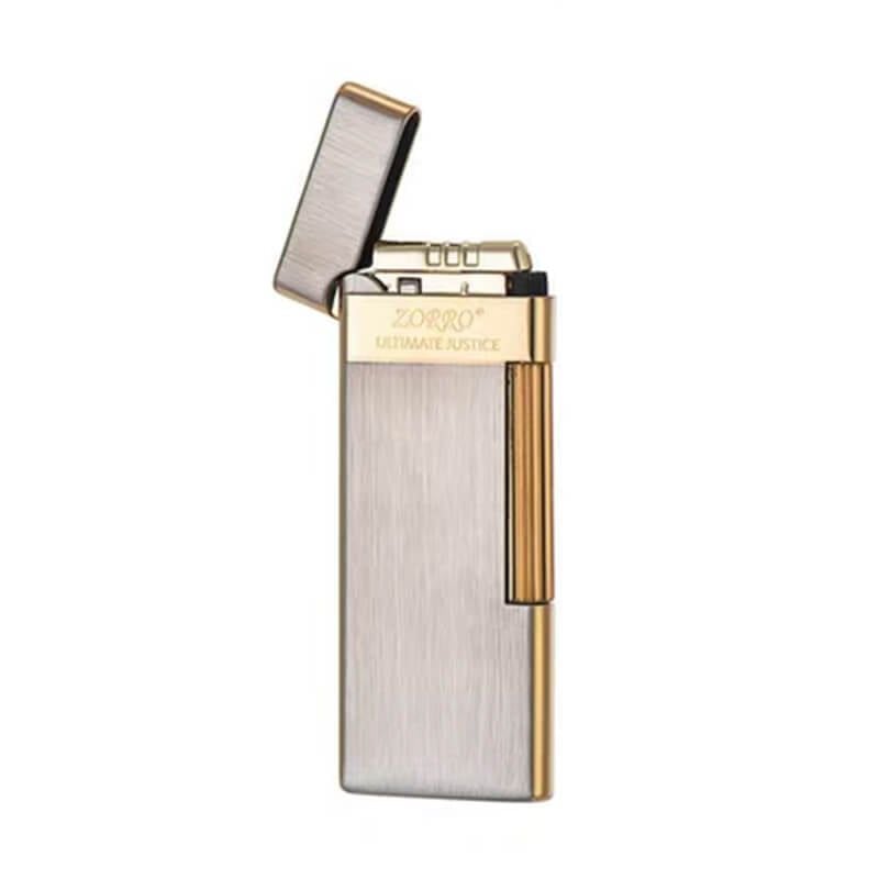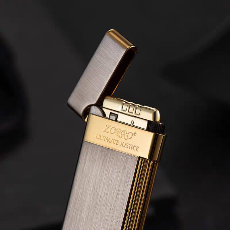 Bật Lửa Ga Đá Chính Hãng Zorro Siêu Mỏng Viền Vàng Số Giới Hạn Lửa Chéo ZC10-002: