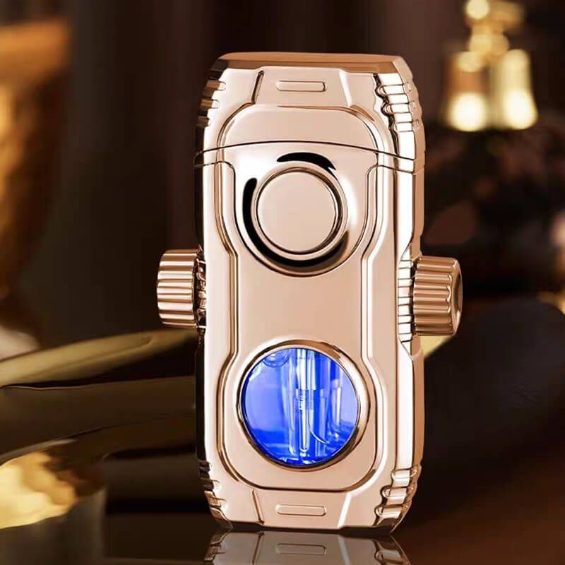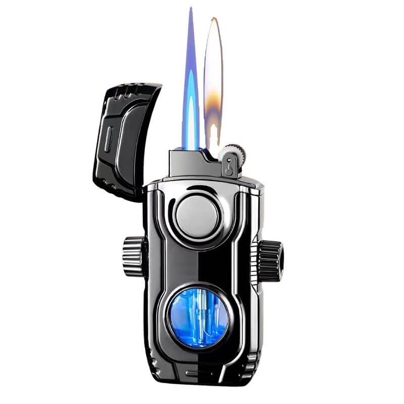 Chiếc bật lửa sử dụng gas TH-638 của Deva Shop được tích hợp nhiều tính năng độc đáo và kinh điển. Sử dụng cơ chế đánh lửa bằng đá lửa truyền thống, được khởi động bằng cách gạt bánh xe đánh đá đơn giản. Ngọn lửa ban đầu là lửa thường, bấm và giữ nút tròn nhỏ ở phía trước để chuyển sang ngọn lửa khò 1 tia mạnh mẽ. Bật lửa còn có có ô cửa trong suốt để quan sát lượng gas còn lại. Bên cạnh bật lửa tích hợp trục xoay Fidget Spiner để giải trí cho người sử dụng. Dưới đáy là lỗ bơm gas kết hợp điều chỉnh lửa to nhỏ. Mẫu bật lửa này có thể được bơm đầy với hầu hết tất cả các loại bình xăng có tại Deva Shop.