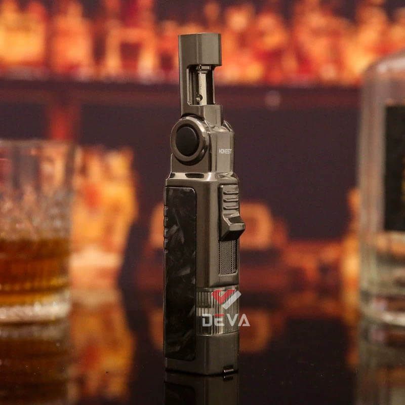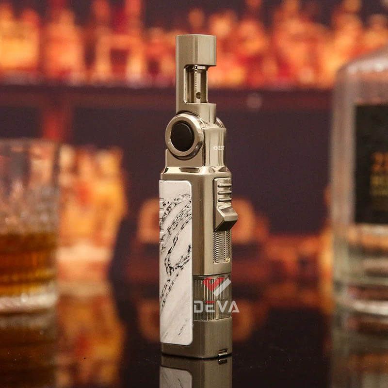 Bật Lửa Honest BCZ863 Khò 1 Tia Cổ Xoay 60 Độ Độc Đáo & Tích Hợp Đục Cigar. Deva Shop cùng bạn khẳng định đẳng cấp và sự tiện dụng với bật lửa gas Honest BCZ863 chính hãng. Đây không chỉ là một công cụ tạo lửa thông thường mà là một siêu phẩm công nghệ dành riêng cho tín đồ cigar và những người yêu thích sự khác biệt. Với thiết kế hiện đại, tinh xảo, BCZ863 mang đến trải nghiệm sử dụng linh hoạt chưa từng có. Sở hữu cổ xoay 4 nấc với góc điều chỉnh lên đến 60 độ, giúp bạn dễ dàng châm lửa ở nhiều tư thế khác nhau mà không lo bỏng tay. Tia lửa khò xanh trong suốt, tập trung nhiệt lượng cao, giúp châm cháy nhanh chóng và chống gió cực tốt. Dưới đáy bật lửa được trang bị sẵn dụng cụ đục cigar sắc bén, có thể gấp gọn khi không sử dụng, giúp bạn tiết kiệm không gian và luôn sẵn sàng thưởng thức. Thân vỏ được hoàn thiện với các vân đá cẩm thạch tinh tế, mang lại vẻ đẹp lịch lãm và cảm giác cầm nắm chắc chắn. Thiết kế có ô cửa sổ báo gas giúp bạn chủ động nạp lại năng lượng bất cứ lúc nào.