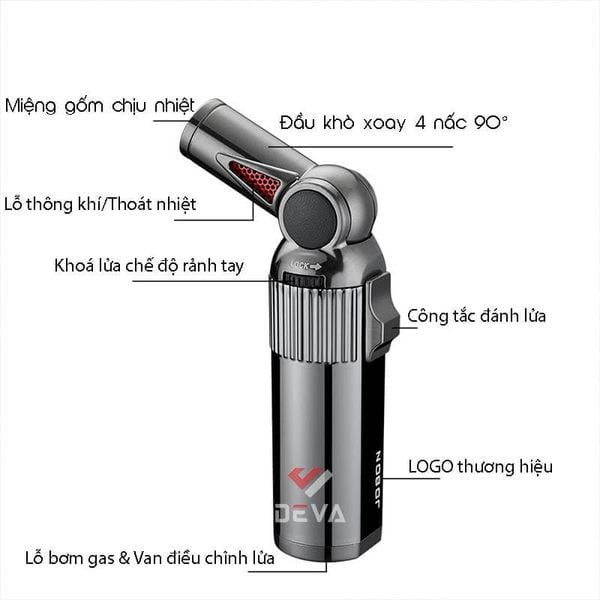 Bật lửa khò 1 tia JOBON ZB-5018 không chỉ mạnh mẽ mà còn thể hiện phong cách cá nhân hoàn hảo cho bạn. Được thiết kế dành riêng cho người sành điệu, đặc biệt là những tín đồ xì gà, ZB-5018 sở hữu ngọn lửa khò 1 tia cực mạnh, tập trung và chống gió tuyệt đối, giúp bạn châm lửa nhanh chóng trong mọi điều kiện. Điểm nổi bật nhất là thiết kế cổ xoay linh hoạt 4 nấc (gấp 90°), cho phép bạn điều chỉnh góc độ đánh lửa tiện lợi khi châm xì gà, nến thơm hoặc sử dụng ngoài trời. Đặc biệt, ZB-5018 được trang bị khóa rảnh tay (Lock) thông minh, giúp bạn khóa giữ ngọn lửa khò mà không cần giữ nút, mang lại sự tiện lợi tối đa. Mẫu bật lửa này có thể được bơm đầy với hầu hết tất cả các loại bình gas có tại Deva Shop mà không cần sử dụng thêm bất kỳ đầu bơm nào.Với chất liệu cao cấp và nhiều màu sắc thời thượng, JOBON ZB-5018 không chỉ là một công cụ mà còn là một phụ kiện đẳng cấp thể hiện gu thẩm mỹ tinh tế của bạn.