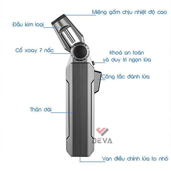 Tìm kiếm bật lửa khò 1 tia mạnh mẽ, đa năng? Chiếc Jobon ZB-102 của Deva Shop chính là lựa chọn hoàn hảo! Đây là mẫu hộp quẹt khò được giới mộ điệu săn đón nhờ thiết kế thông minh, tích hợp các tính năng cao cấp. Ngọn lửa khò 1 tia lớn cho nhiệt lượng mạnh, ổn định, chống gió tuyệt đối, lý tưởng để châm xì gà, đun nấu hoặc các công việc cần nhiệt độ cao. Cổ xoay linh hoạt với 7 nấc về 2 bên giúp bạn dễ dàng điều chỉnh góc khò, cực kỳ tiện lợi khi sử dụng trong nhiều tình huống khác nhau. Khoá gas an toàn giữ cho ngọn lửa cháy liên tục mà không cần giữ nút, đảm bảo an toàn và rảnh tay khi cần khò trong thời gian dài, đồng thời khoá lại khi không cần sử dụng. Chất liệu bền bỉ, van điều chỉnh lửa dễ dàng, mẫu bật lửa này có thể được bơm đầy với hầu hết tất cả các loại bình gas có tại Deva Shop mà không cần sử dụng thêm bất kỳ đầu bơm nào.