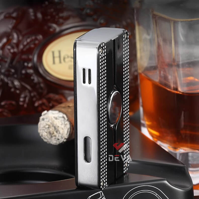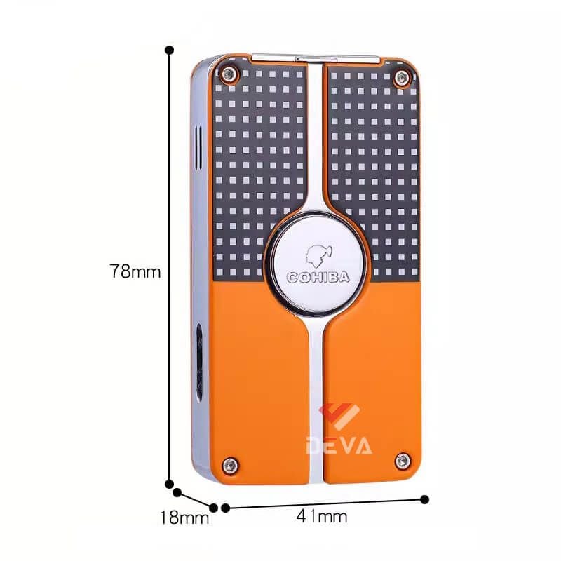 Chiếc bật lửa khò 3 tia của hãng Cohiba COB-58 là một sản phẩm tuyệt vời bổ sung cho bộ sưu tập của người chơi Cigar. Ngọn lửa khò mạnh mẽ giúp tăng tốc thời gian châm lửa, không những thế còn có khả năng chống chịu nhiều điều kiện thời tiết không thuận lợi như gió mưa. Bên hông bật lửa có ô cửa nhỏ cho phép quan sát lượng gas còn lại bên trong. Dưới đáy bật lửa bổ sung thêm đục Cigar có thể mở ra gấp gọn vô cùng tiện dụng. Mẫu bật lửa này có thể được bơm đầy với hầu hết tất cả các loại bình gas có tại Deva Shop mà không cần sử dụng thêm bất kỳ đầu bơm nào.