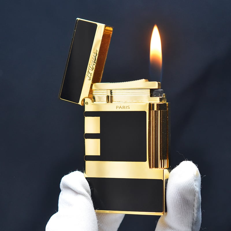 - Bật lửa S.T.Dupont sơn mài đen viền vàng hoặc viền bạc tinh tế và sang trọng