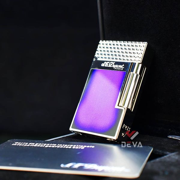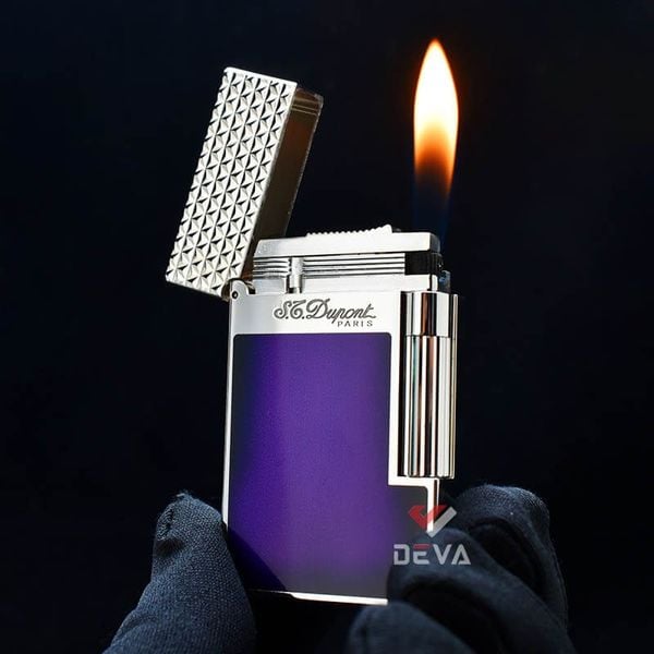 Chiếc bật lửa D165 của Deva Shop là mẫu Dupont sơn mài với màu sắc mới mẻ kết hợp với kiểu dáng kinh điển. Phần nắp bật lửa được tạo hình vân kim cương hình tam giác nổi bật. Phần sơn mài ở thân có màu tím nổi trội vô cùng ấn tượng. Đây thực sự là mẫu bật lửa mà anh em