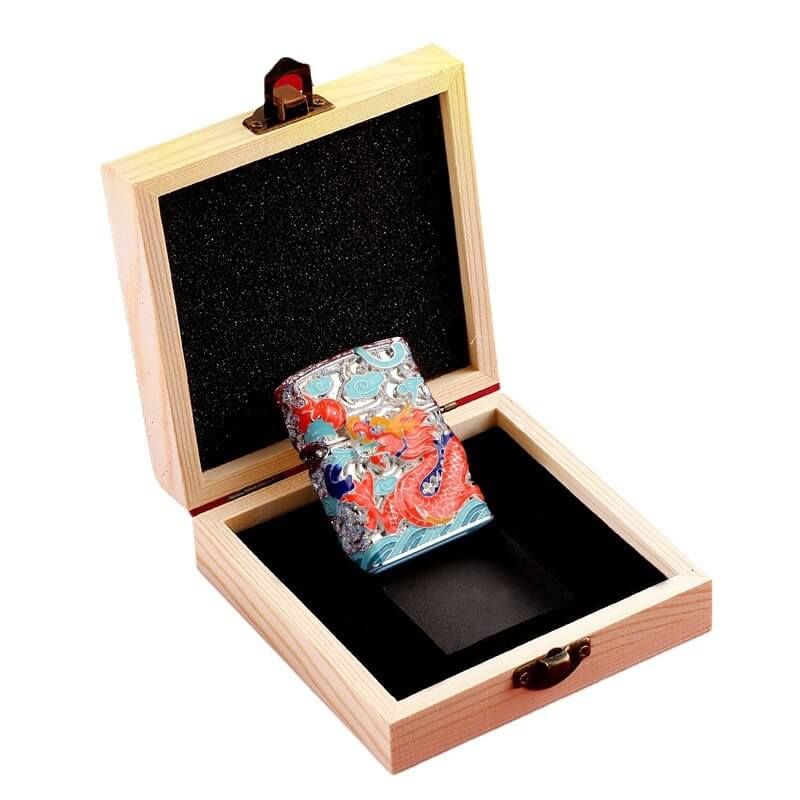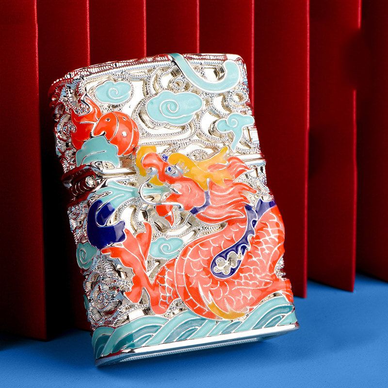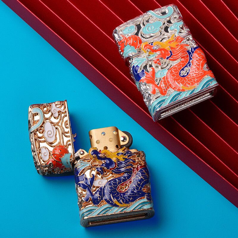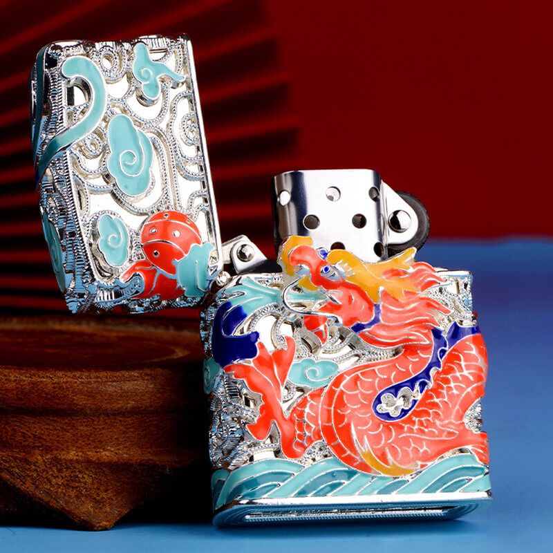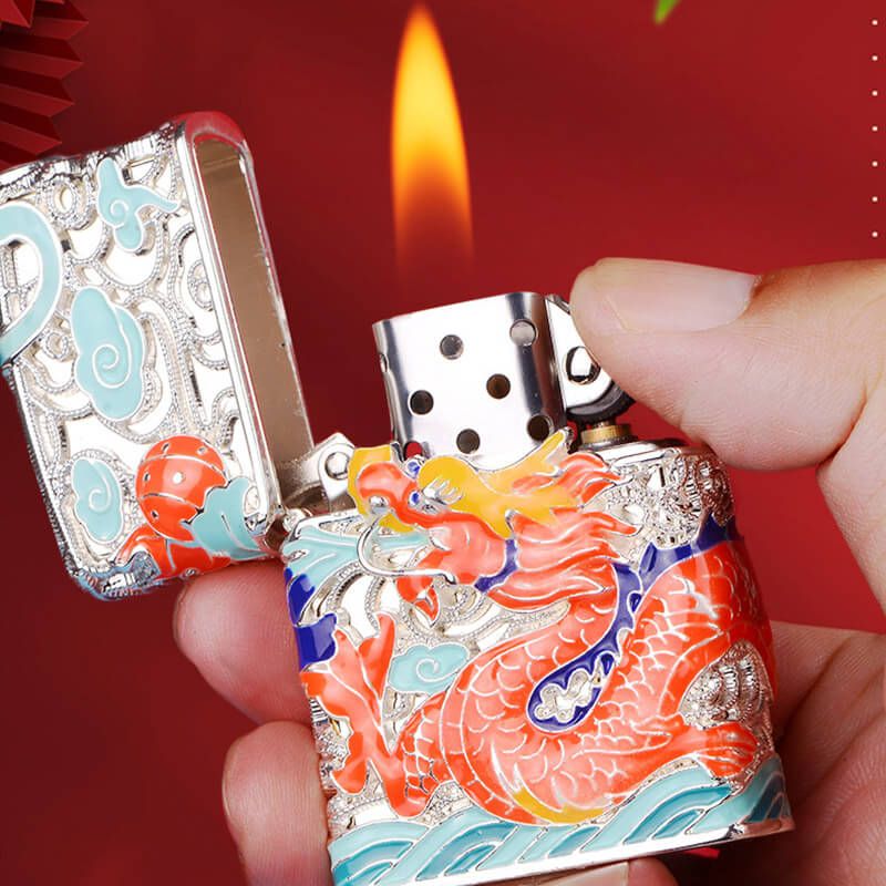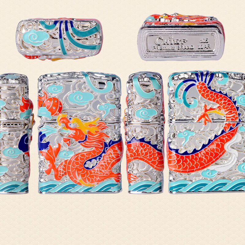 Bật Lửa Xăng Đá Chính Hãng Chief Bọc Lưới Hoa Văn Chủ Đề Rồng Thần CF1355-1356: