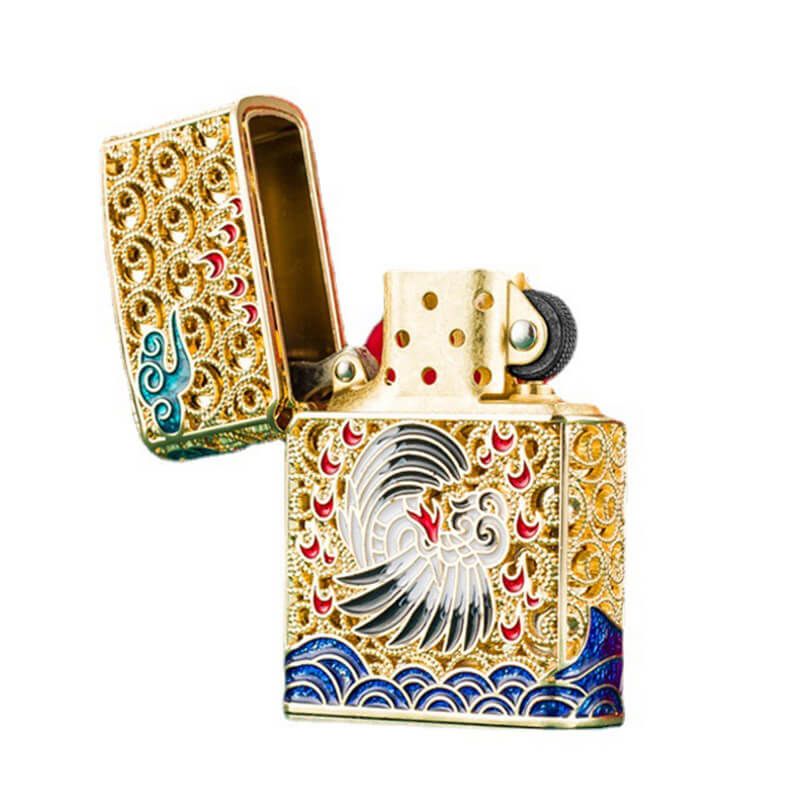 Bật lửa xăng đá Chief bọc lưới hoa văn chủ đề tiên hạc CF1260-1261