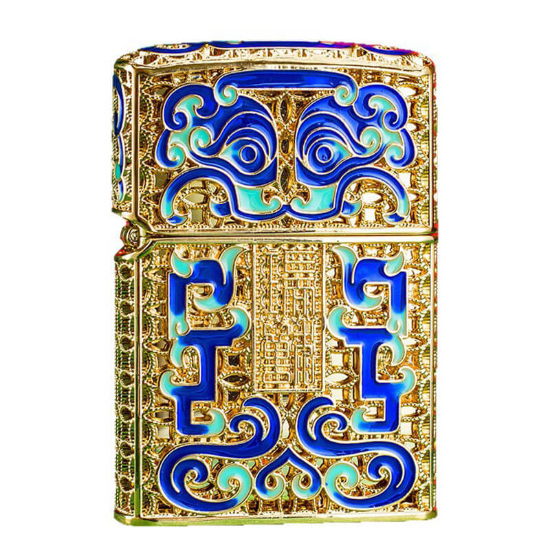 Bật lửa xăng đá Chief Bọc Vàng Hoa Văn Sơn Mài CF1256 - CF1257: