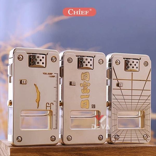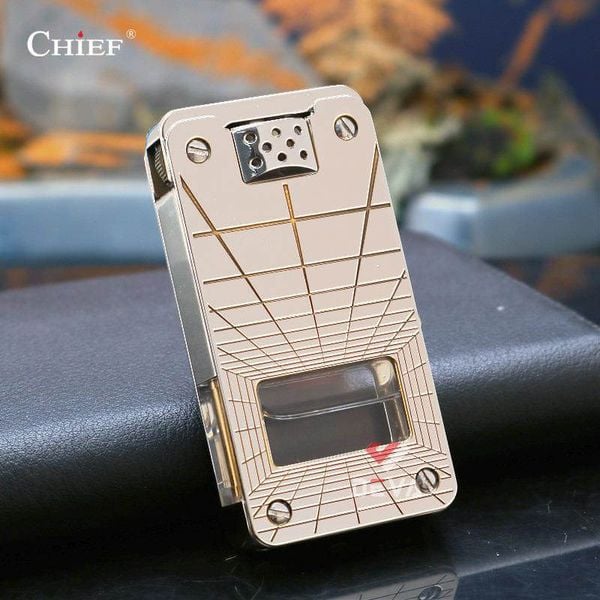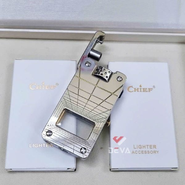 Bật lửa xăng đá chính hãng Chief đánh lửa tự động ô chứa trong suốt CF 705