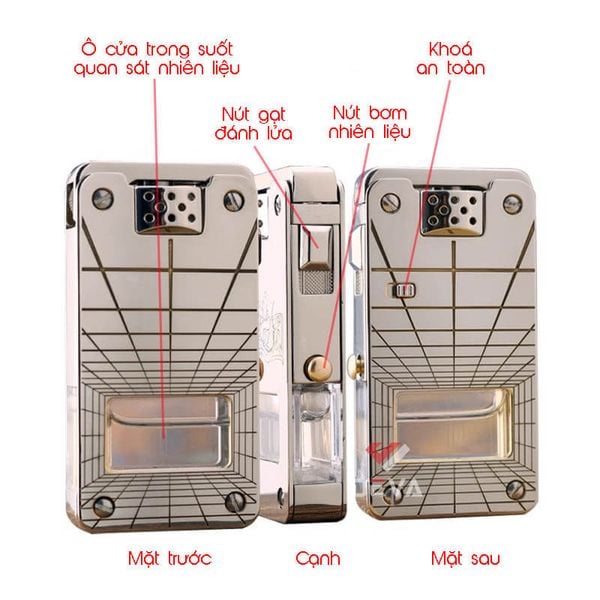 - Có một chút khác biệt. Thay vì rút ruột như Zippo, CF705 thường có nắp vặn dưới đáy hoặc lỗ châm xăng trực tiếp vào buồng chứa. Bạn chỉ cần mở nắp vặn và bơm xăng cho đến khi thấy buồng chứa đầy là được.