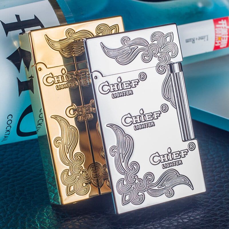 Bật Lửa Xăng Đá Chính Hãng Chief Khắc Sâu Hoa Văn Cổ Điển CF041: