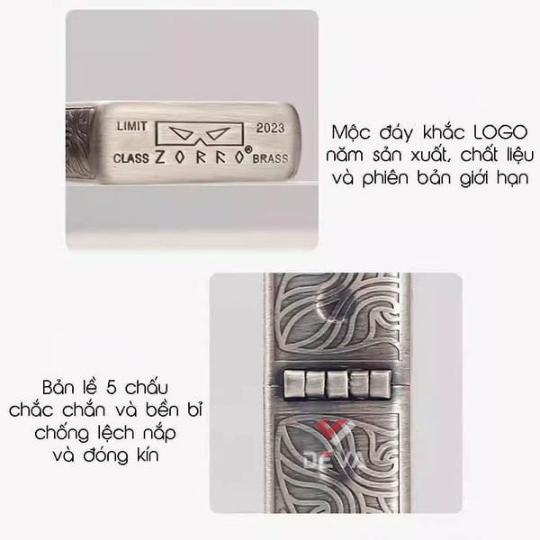 | Hộp đi kèm | 01 hộp đựng cao cấp đặc trưng của Zorro |