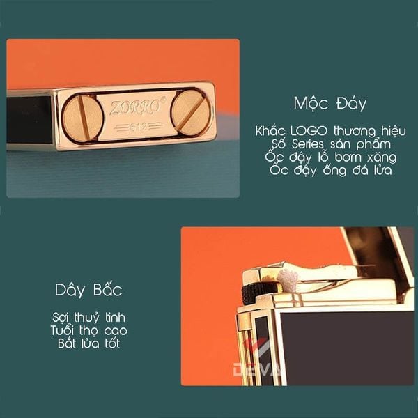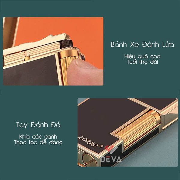 Bật lửa xăng đá chính hãng Zorro tay đánh đá ngang các mẫu Series Z612