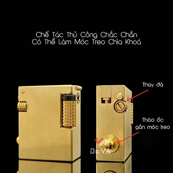 Bật lửa xăng đá thủ công đồng nguyên khối có móc khoá TC03