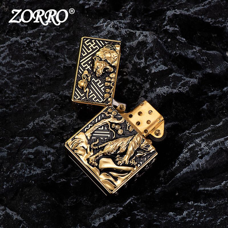Bật Lửa Xăng Đá Chính Hãng Zorro Vỏ Bọc Dày Ốp Nổi Hình Hổ Gầm Z-KJ1018: