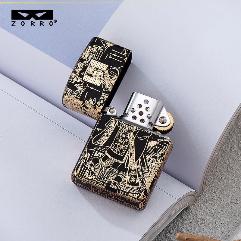 Bật lửa xăng đá chính hãng Zorro chủ đề Tần Thủy Hoàng Đế mạ vàng Z2-1071