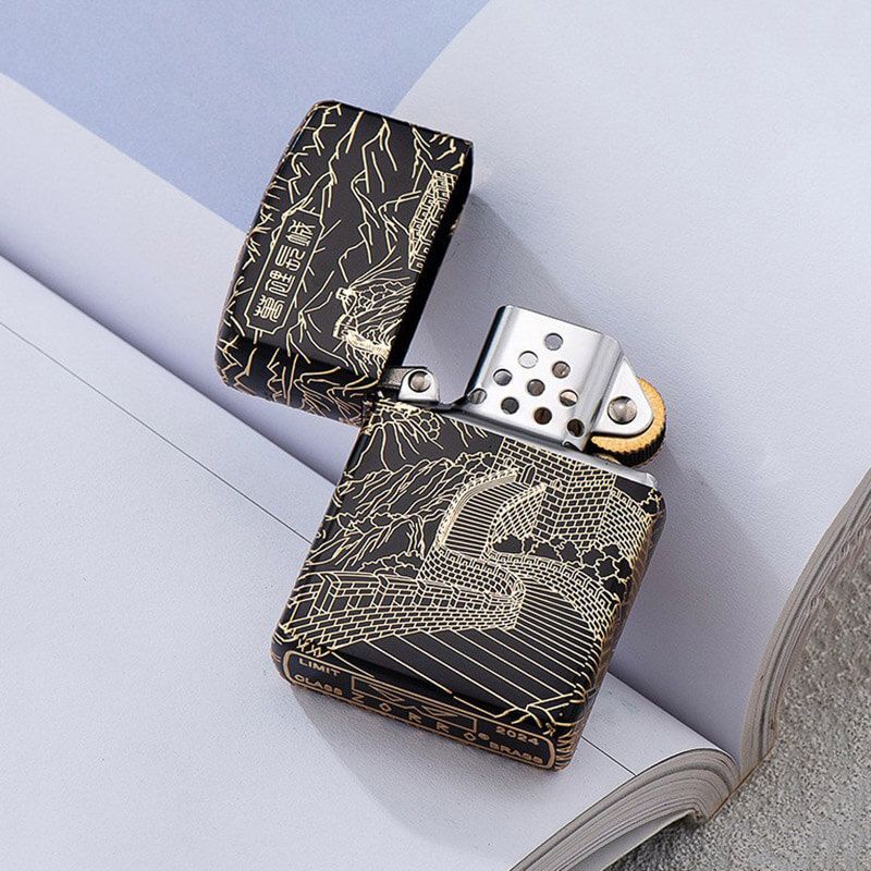 Bật lửa xăng đá Zorro chủ đề Vạn Lý Trường Thành mạ vàng Z2-1076