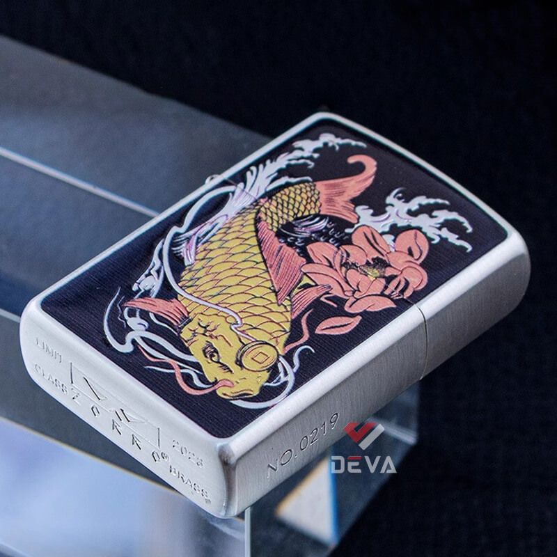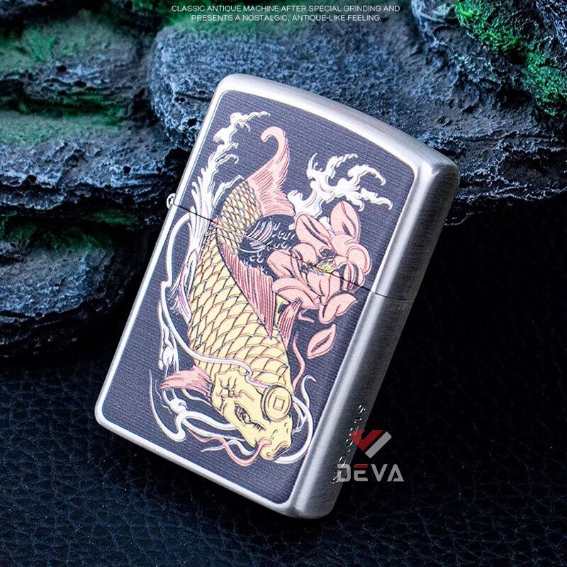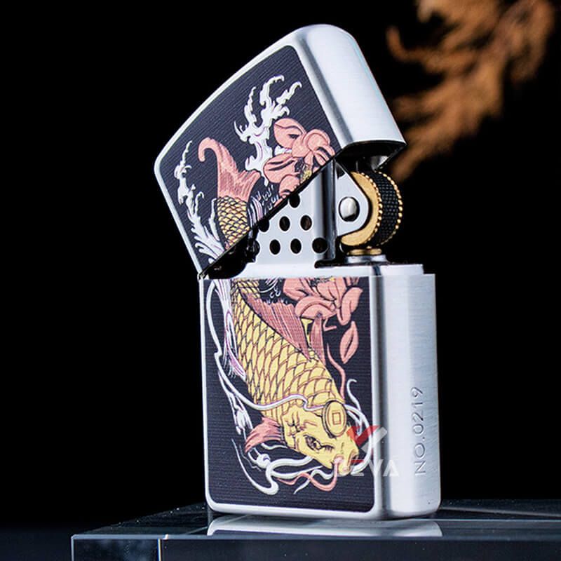 Bật lửa xăng đá Zorro hình cá chép đầm sen bản giới hạn Z2-1117