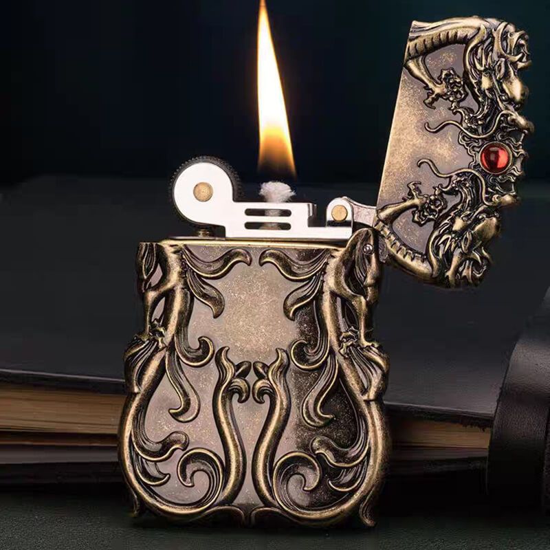 Bật lửa xăng độc lạ rồng nhả ngọc đỏ Zorro Z610