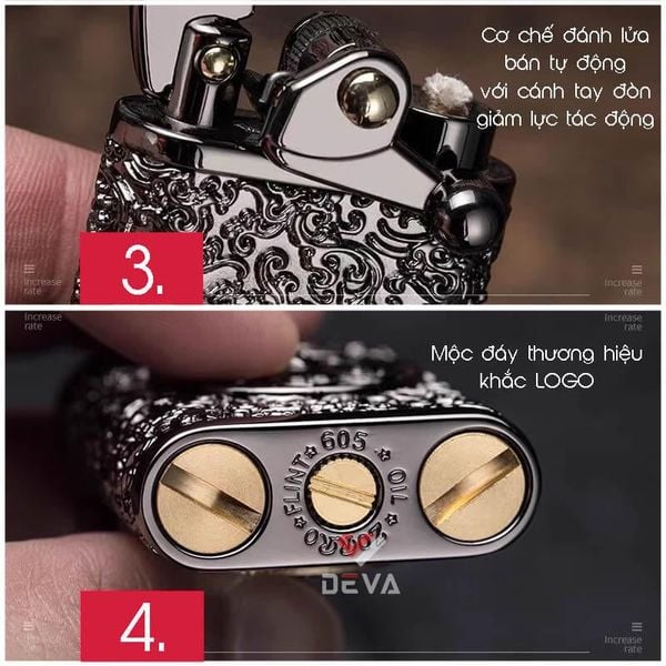 Chiếc bật lửa Zorro Z592 của Deva Shop có thiết kế độc đáo dành cho dân chơi sưu tầm. Zorro Z592 có chất liệu hợp kim thép chắc chắn, mặt trước ốp các chủ thể khác nhau như bộ máy phức tạp của đồng hồ cơ học, mặt xoay của trò chơi roulette nổi tiếng, bàn tính cổ Trung Quốc... Bề mặt bật lửa được tạo hình hoa văn nổi kiểu cổ điển. Bên cạnh đó cơ chế đánh lửa bán tự động với việc sử dụng một cần gạt giúp cho việc sử dụng chỉ bằng một tay đồng thời giúp người dùng thao tác nhẹ nhàng hơn. Ngoài ra mẫu bật lửa Z592 còn có một nắp chụp bấc có tác dụng dập lửa an toàn khi không sử dụng và làm giảm thiểu khả năng bay hơi của nhiên liệu. Z592 là mẫu bật lửa vừa có giá trị sưu tầm vì những đặc tính và chủ đề độc đáo, lại vừa là chiếc bật lửa tiện dụng dành cho bất kỳ ai.