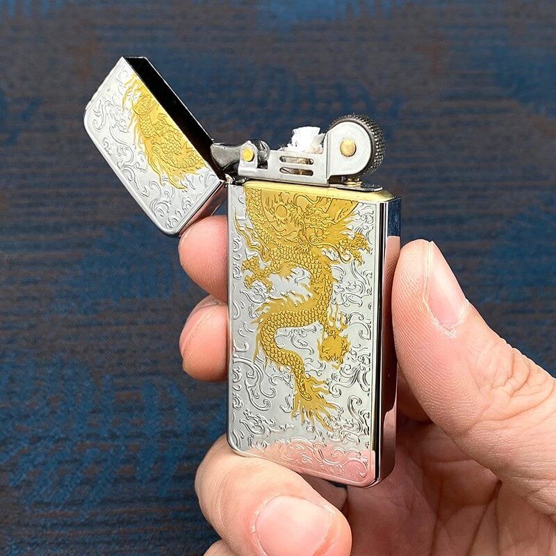 Bật lửa zorro xăng đá siêu mỏng khắc hình rồng ZS5