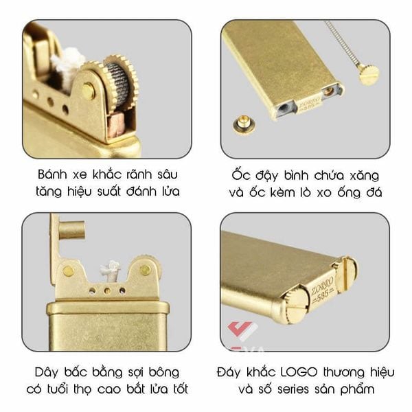 Bật lửa xăng đá chính hãng Zorro siêu mỏng nắp chụp bấc Z585