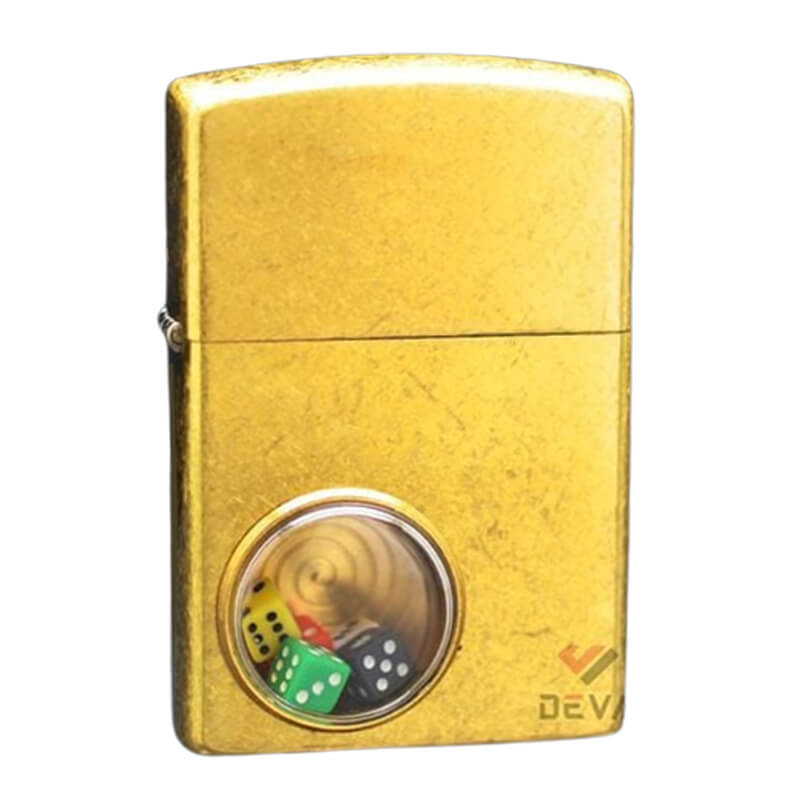 Bật Lửa Xăng Đá Chính Hãng Zorro Ô Chứa Xúc Xắc May Mắn Z91730A Vàng Bụi: