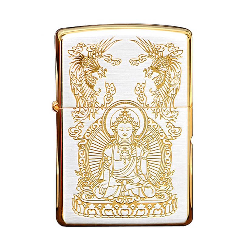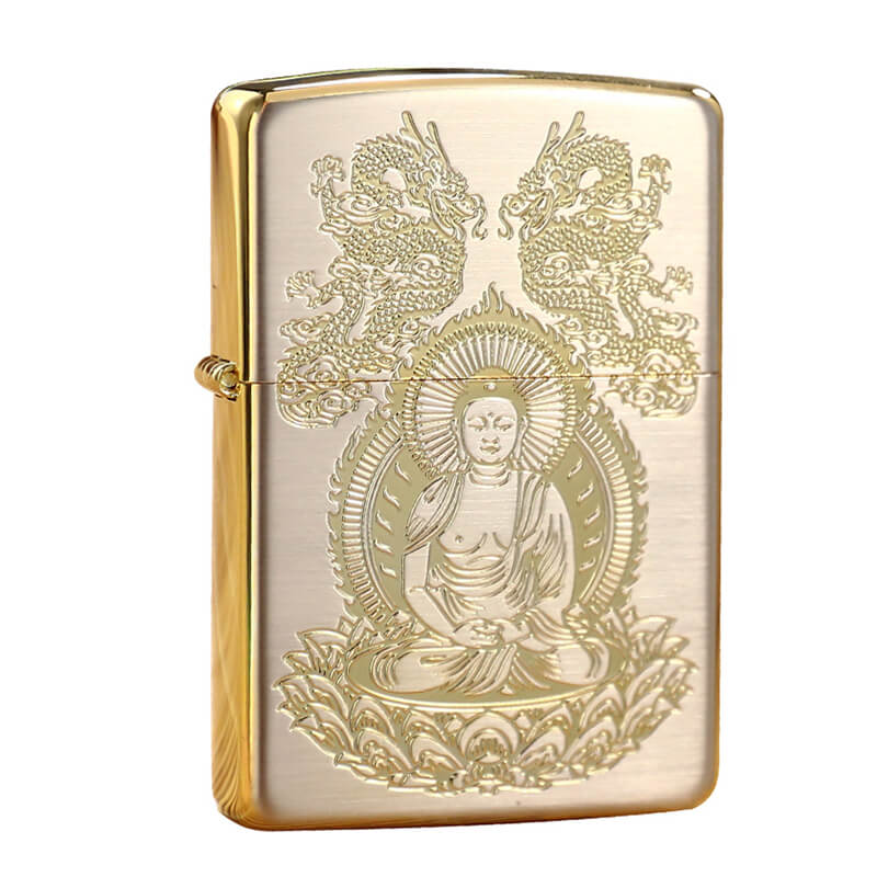Bật Zippo Mỹ xuất Nhật hình phật khắc ăn mòn mạ vàng Z86