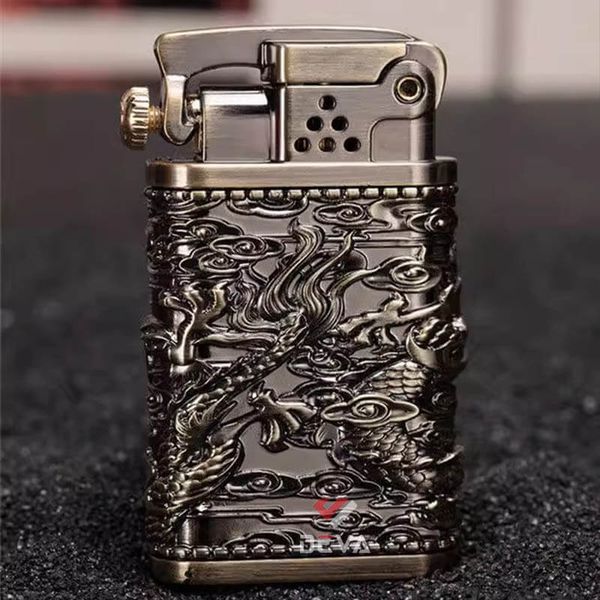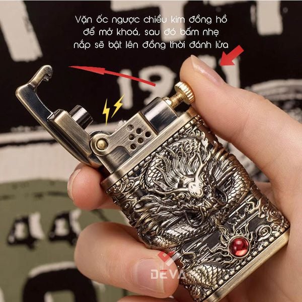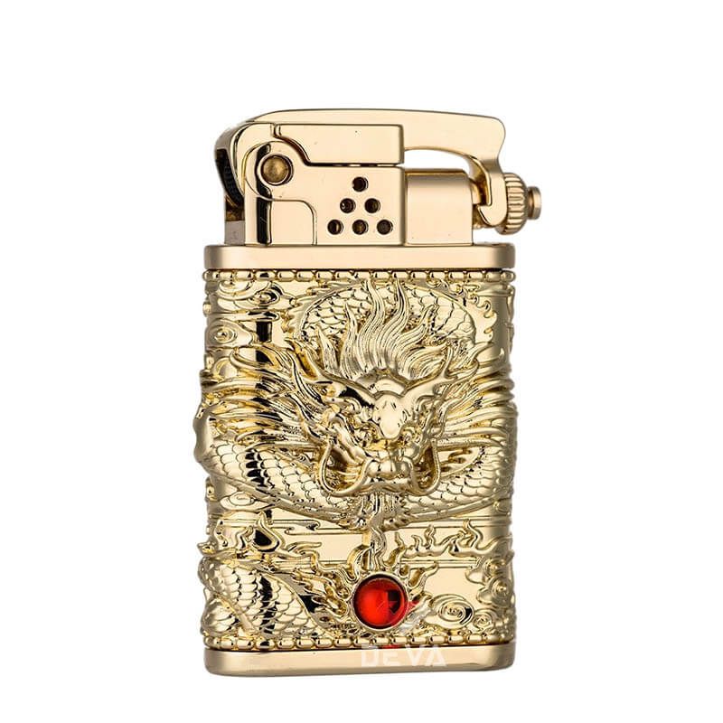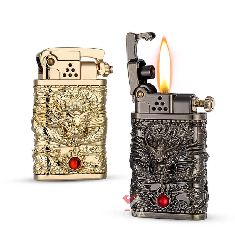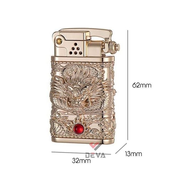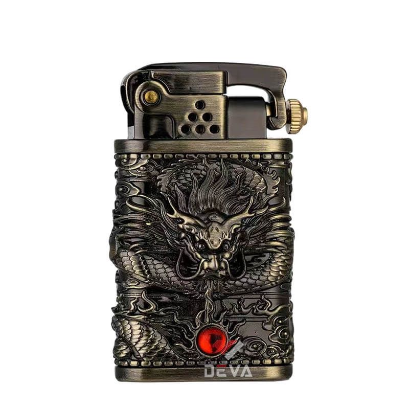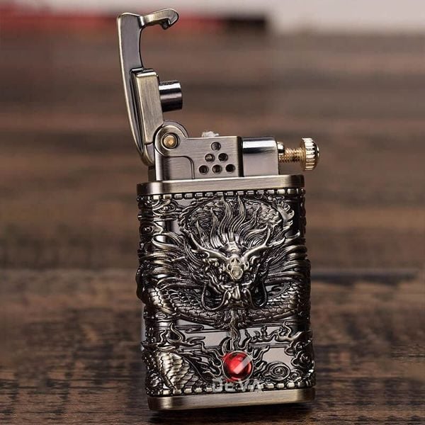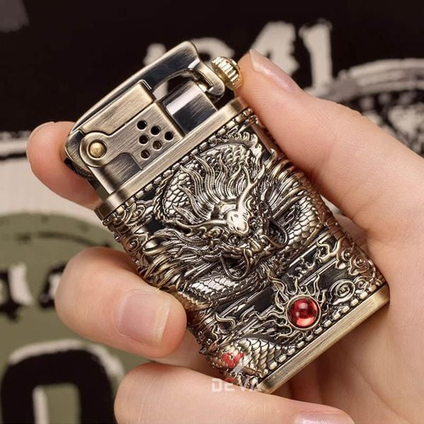 -Thiết Kế Rồng Nổi 3D Đẳng Cấp: Hình tượng Rồng (Long) là biểu tượng của quyền uy và may mắn, được đúc nổi khối 3D cực kỳ tinh xảo, bao phủ thân bật lửa. Các chi tiết vảy rồng, móng vuốt sắc nét tạo cảm giác cầm nắm chắc chắn và vẻ đẹp phong thủy độc đáo.