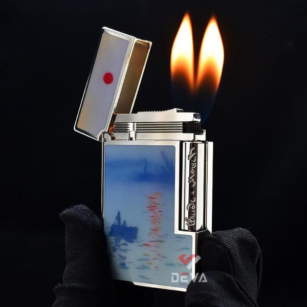 Chiếc bật lửa Dupont D175 của Deva Shop mang thiết kế đặc biệt mang chủ đề bức tranh nổi tiếng “Impression, Sunrise” của họa sĩ Claude Monet sản xuất tại xưởng tranh Waki, đây là một tác phẩm nghệ thuật quan trọng đánh dấu sự ra đời của phong cách hội họa ấn tượng (impressionism) và trở thành biểu tượng của phong cách nghệ thuật này. “Impression, Sunrise” được vẽ vào năm 1872 và thể hiện cảnh bình minh trên bờ biển thành phố Le Havre, nơi Monet lớn lên. Tác phẩm này không phải là một bức tranh chính xác về địa điểm, mà chủ yếu tập trung vào cảm nhận của họa sĩ về ánh sáng, màu sắc và không gian. Bức tranh sử dụng kỹ thuật nước lửa mỏng manh, tạo nên những nét vẽ thoáng qua và ánh sáng mờ nhạt, gợi lên cảm giác mơ hồ, không rõ ràng, chính vì thế tác phẩm nhận được nghệ danh “impressionism”. Các phần chi tiết trên chiếc Dupont D175 được hoàn thiện cực kỳ cẩn thận. Màu sơn được thể hiện vô cùng chân thực, cao cấp và sang trọng. Mẫu Dupont D175 chính là phần còn thiếu trong bộ sưu tập bật lửa của anh em!