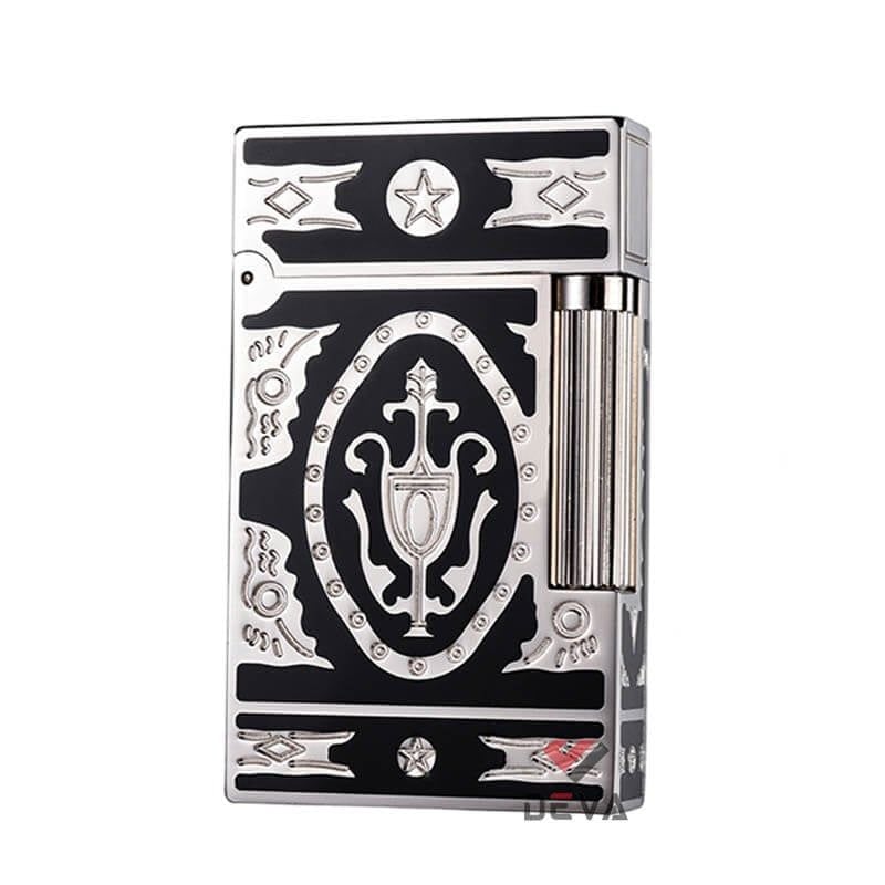 Bật Lửa ST Dupont Xăng Đá 1 Lỗ Sơn Mài Đen Hoa Văn Cổ Điển Châu Âu D08T-DX Viền Trắng: