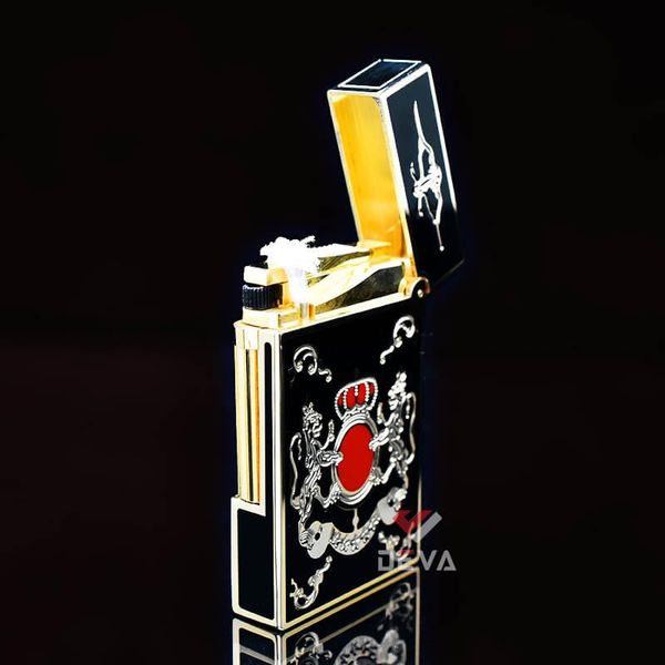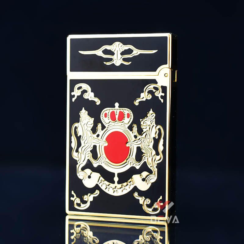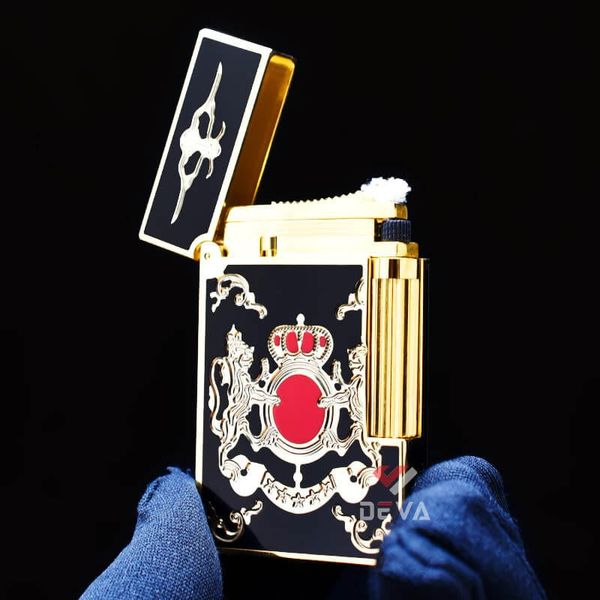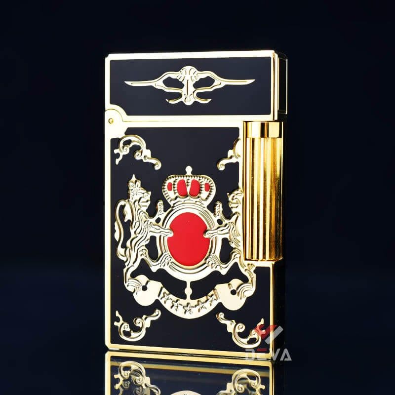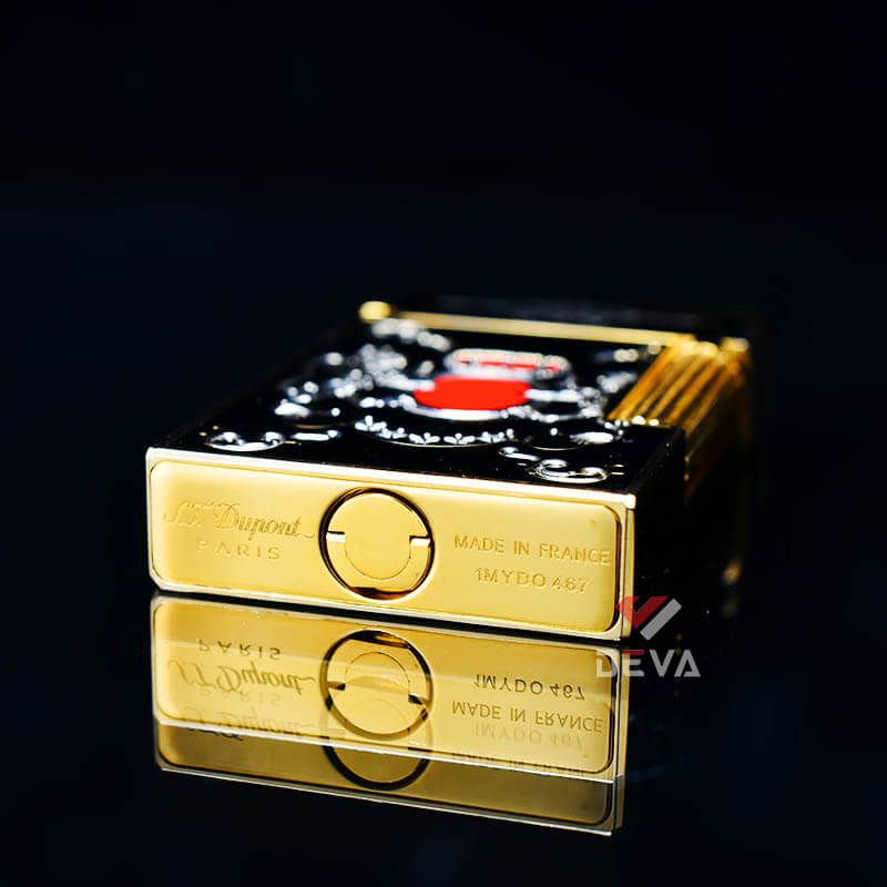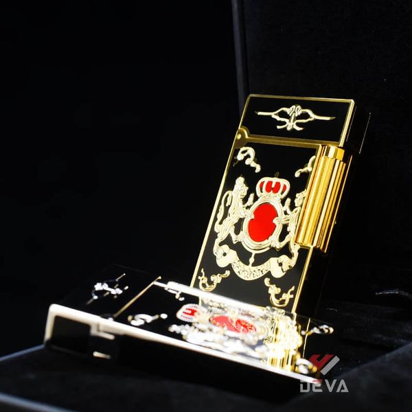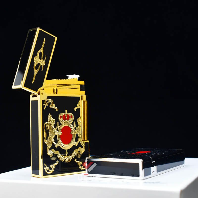 Bật Lửa ST Dupont Xăng Đá 1 Lỗ Sơn Mài Đen Hoa Văn Hoàng Gia Châu Âu DX33V Viền Vàng: