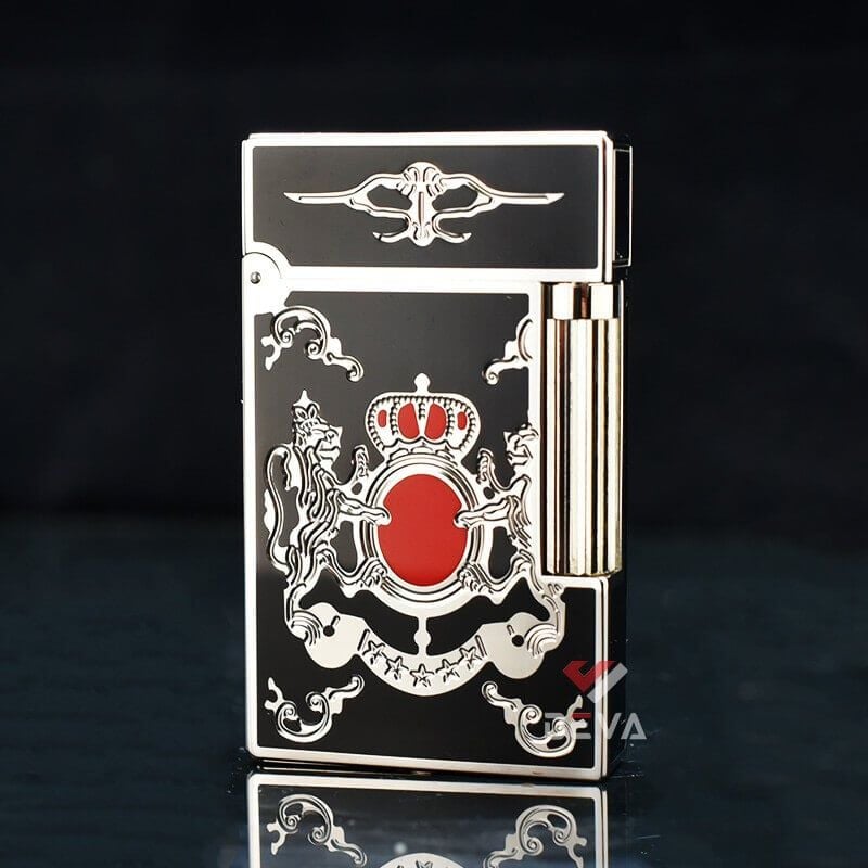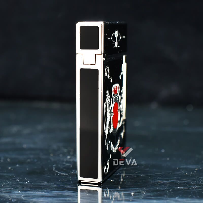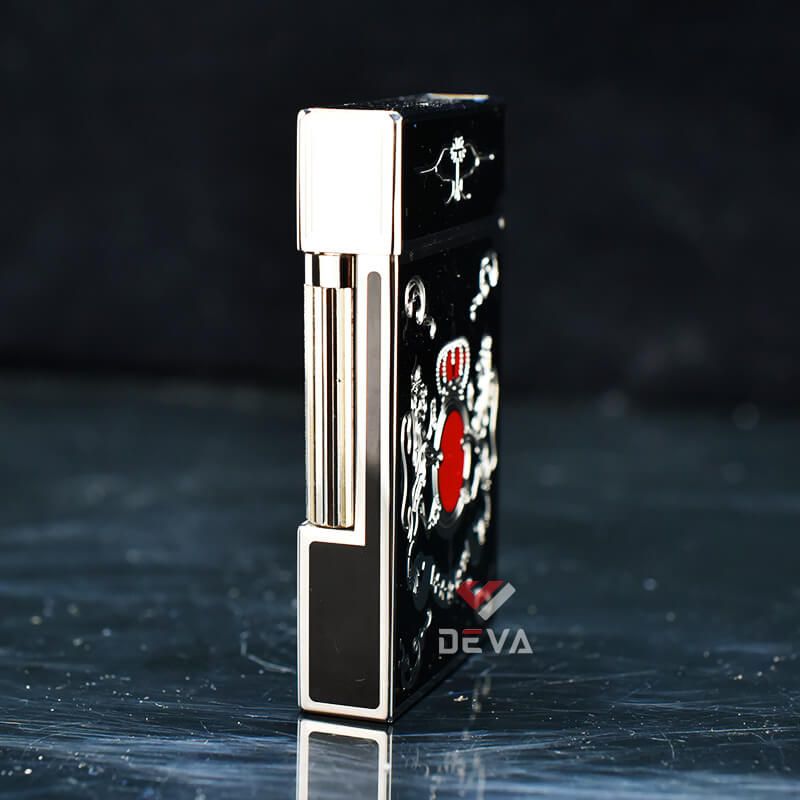 Bật Lửa ST Dupont Xăng Đá 1 Lỗ Sơn Mài Đen Hoa Văn Hoàng Gia Châu Âu DX33T Viền Trắng: