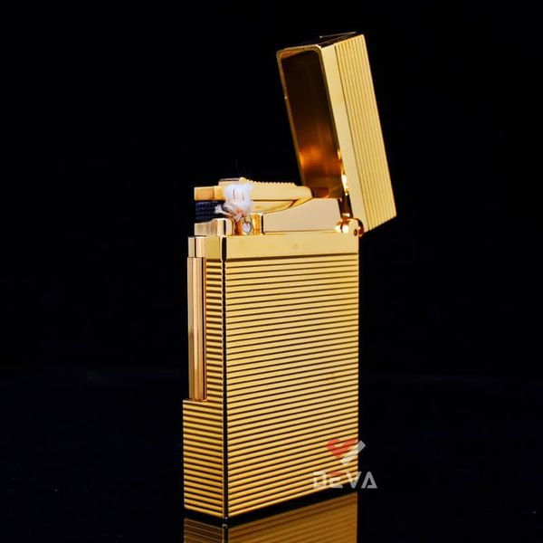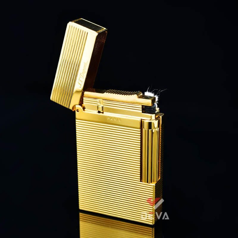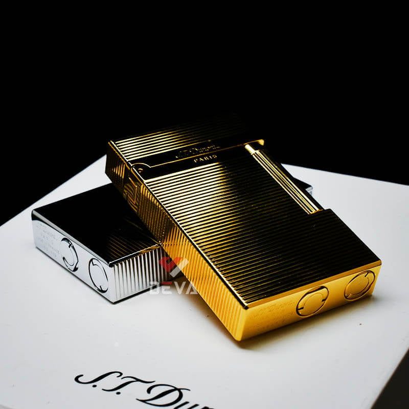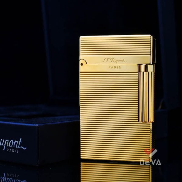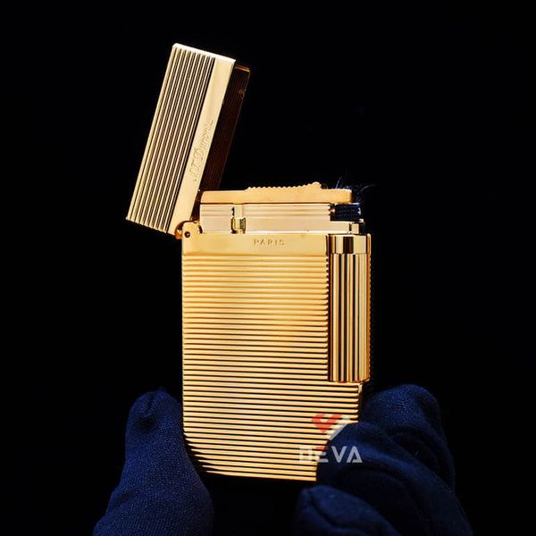 Bật Lửa ST Dupont Hồng Kông Xăng Đá Hoạ Tiết Vân Kẻ Ngang Nổi D217V-DX Vàng: