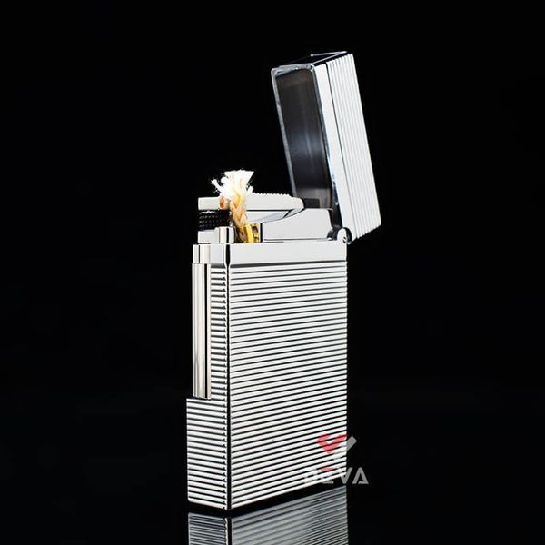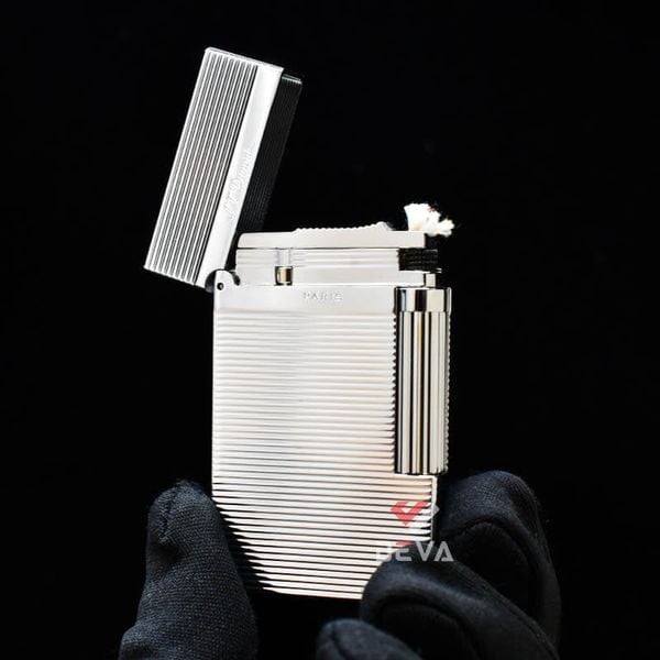 Bật Lửa ST Dupont Hồng Kông Xăng Đá Hoạ Tiết Vân Kẻ Ngang Nổi D217T-DX Trắng: