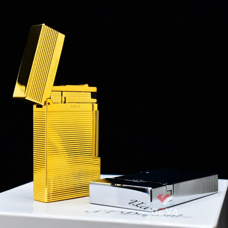 - Bật lửa S.T.Dupont sơn mài đen viền vàng hoặc viền bạc tinh tế và sang trọng