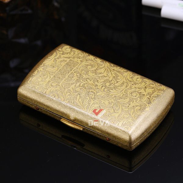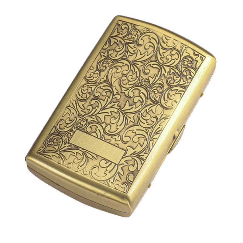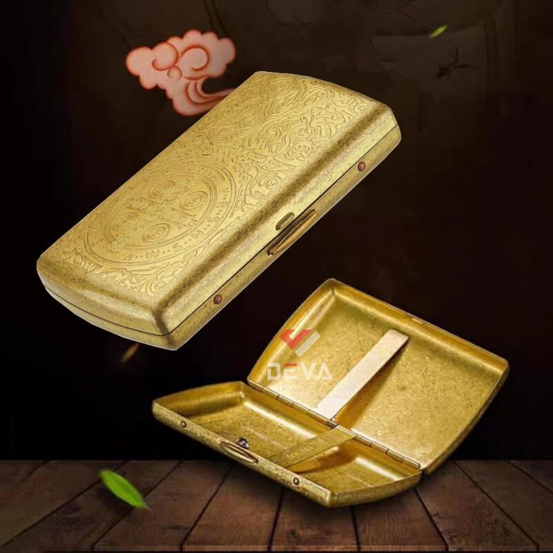 Hộp thuốc lá kim loại: bền, chắc chắn, dễ lau chùi, phù hợp với người thường xuyên mang theo hoặc thích phong cách mạnh mẽ. Mẫu mã đa dạng: trơn, khắc hoa văn, khắc hình rồng – phượng, sọc dọc hoặc giả carbon.