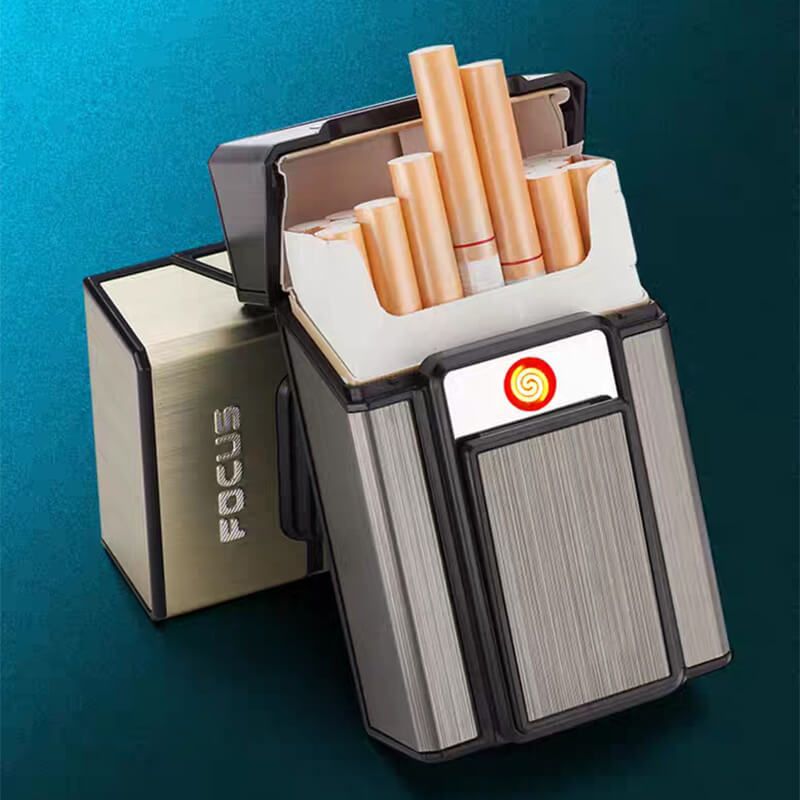 Hộp đựng thuốc lá Focus nguyên bao 20 điếu loại 6.5mm kèm bật lửa điện nhiệt JD-YH071