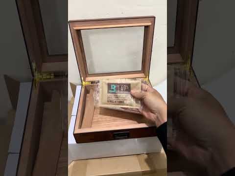 - Mức ẩm lý tưởng nhất là từ 68% đến 72%. Bạn có thể dễ dàng theo dõi chỉ số này thông qua đồng hồ đo ẩm được tích hợp ngay trên nắp hộp. Nếu ẩm quá cao (>75%), điếu thuốc dễ bị mốc và khó cháy; nếu quá thấp (<65%), điếu thuốc sẽ bị khô và mất hương vị.