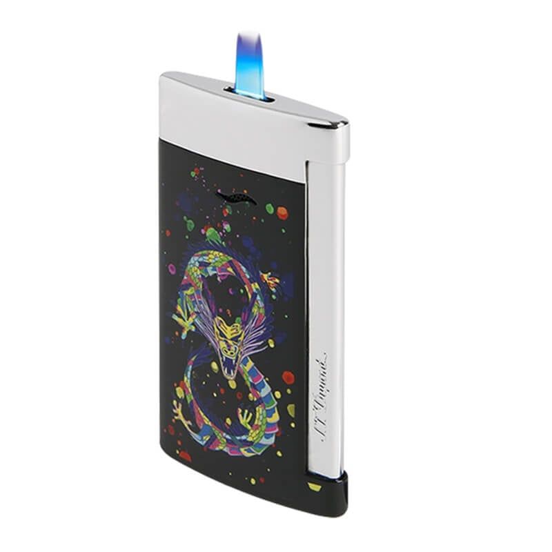 Dòng Slim 7 của S.T. Dupont luôn nổi tiếng vì độ mỏng ấn tượng, thiết kế thanh lịch và ngọn lửa khò mạnh mẽ. Ở phiên bản Dragon Edition, mẫu bật lửa này trở nên đặc biệt nổi bật nhờ họa tiết Rồng đa sắc – biểu tượng cho quyền lực, may mắn và thịnh vượng. Đây là lựa chọn hoàn hảo cho người chơi cigar, người yêu Dupont hoặc khách tìm một món quà tặng đẳng cấp.