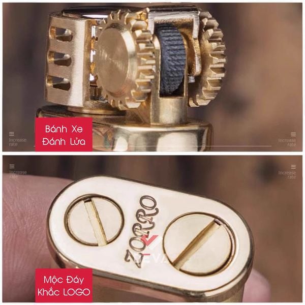 Mẫu Zorro Z588 với thiết kế nguyên khối bằng đồng với nhiều kích thước và mẫu khác nhau. Buồng đốt chống gió đặc biệt nhưng vẫn đảm bảo lưu thông không khí duy trì ngọn lửa ổn định. Phần bánh xe đánh lửa được ốp bánh răng và nắp chụp bảo vệ an toàn cho người sử dụng. Đây thực sự là những chiếc bật lửa tuyệt vời cho bất kỳ ai có cùng đam mê!