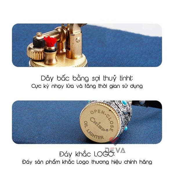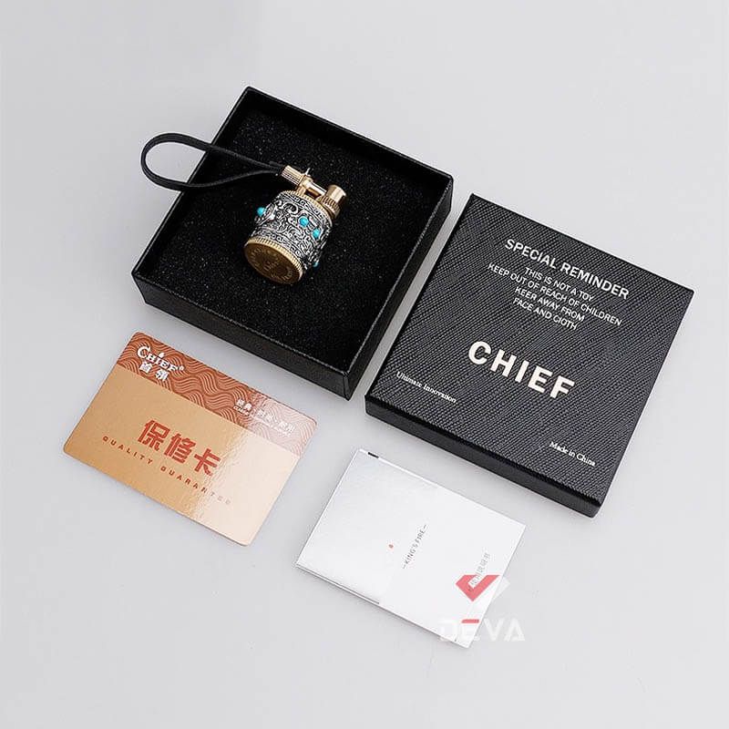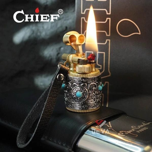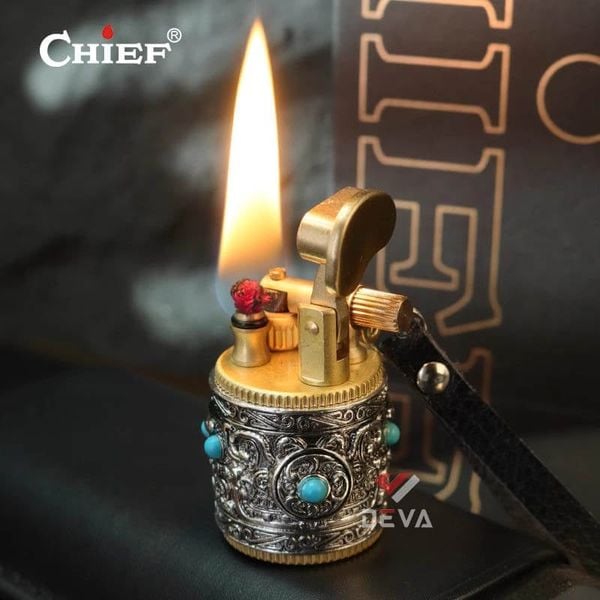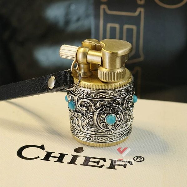 Bật Lửa Xăng Đá Chief CF716 Chính Hãng - Móc Khóa Vòng Xoay Độc Đáo: Bạn tìm kiếm một chiếc bật lửa xăng đá vừa cổ điển, độc đáo lại tiện dụng? Chiếc bật lửa Chief CF716 của Deva Shop chính là lựa chọn hoàn hảo! CF716 mang phong cách hình trụ tròn, vỏ ngoài được chạm khắc hoa văn tinh xảo kết hợp với các viên đá màu xanh ngọc, tạo nên vẻ ngoài cá tính và đẳng cấp khó lẫn. Thân bật lửa được làm từ kim loại cao cấp, đảm bảo độ bền vượt trội và cảm giác cầm nắm chắc chắn. Sử dụng nhiên liệu xăng đá (bấc, đá lửa), cho ngọn lửa mạnh mẽ, ổn định và dễ dàng thay thế phụ kiện. Thiết kế kèm dây đeo tiện lợi, giúp bạn dễ dàng mang theo bên mình như một món phụ kiện thời trang sành điệu, không lo thất lạc. Với vẻ ngoài độc đáo, sang trọng, Bật lửa Chief CF716 là món quà tặng độc đáo lý tưởng cho người thân, bạn bè hoặc đồng nghiệp yêu thích sự khác biệt. Mua ngay bật Lửa Chief CF716 để khẳng định phong cách và sở hữu vật phẩm mồi lửa độc nhất!